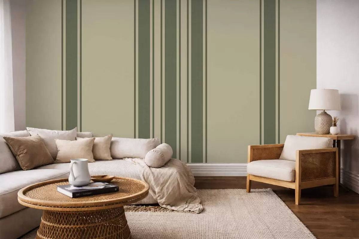 Фототапет Вертикални ивици в приглушена зелена и бежова палитра Nr w05098