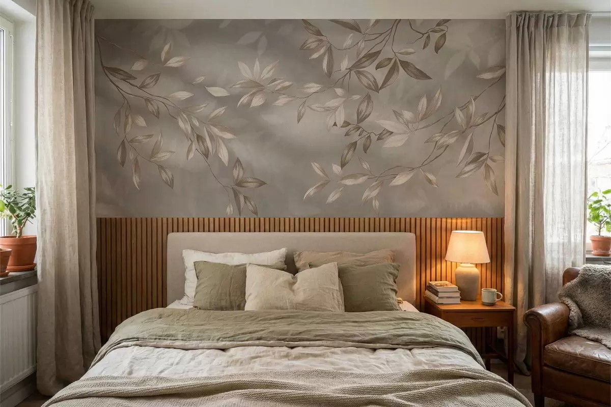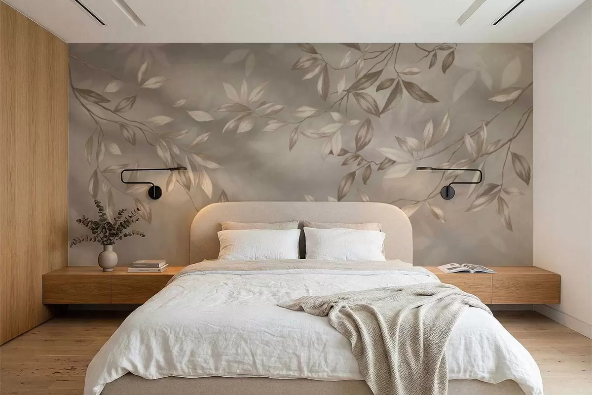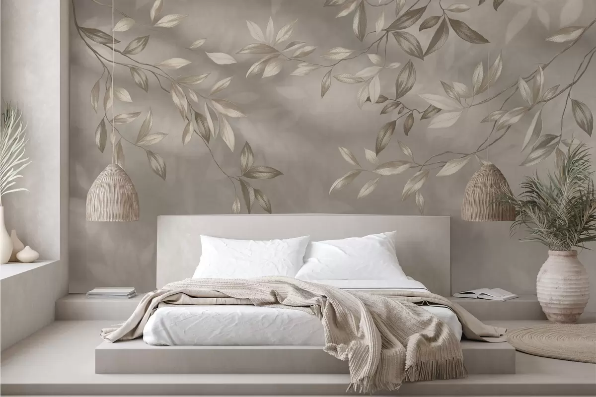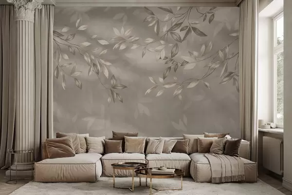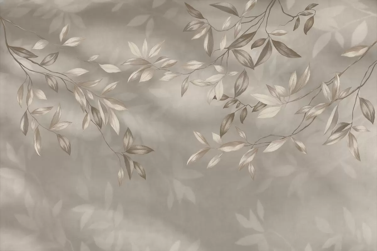 Фототапет Елегантни листа в бежови нюанси на светъл фон Nr w05113