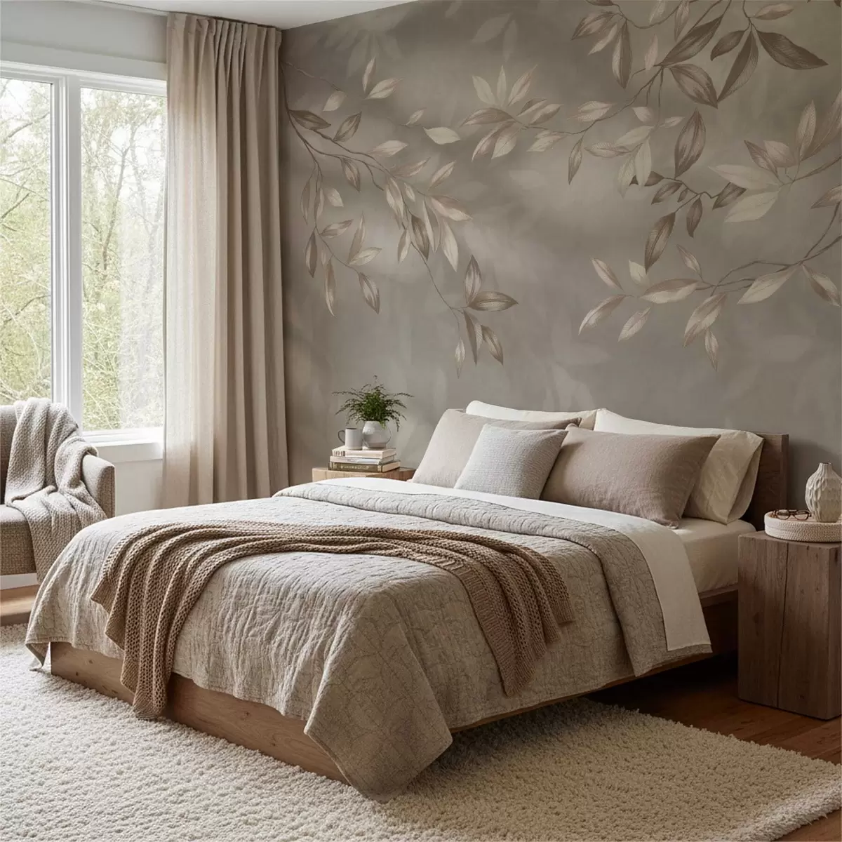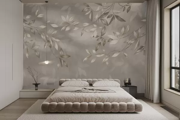 Фототапет Елегантни листа в бежови нюанси на светъл фон Nr w05113