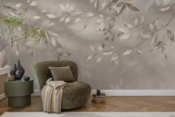 Фототапет Елегантни листа в бежови нюанси на светъл фон Nr w05113