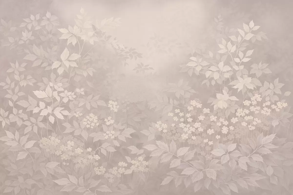 Фототапет Лек ботаничен орнамент с листа и малки цветя Nr w05115
