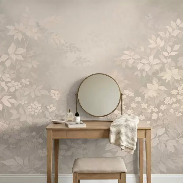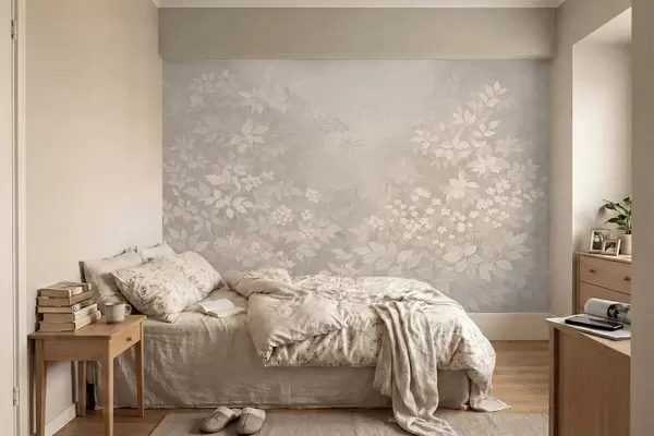 Фототапет Мек ботаничен мотив с листа и цветя в мъгла Nr w05115v1