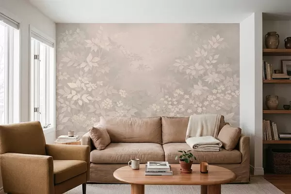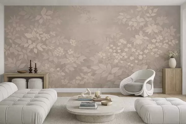 Фототапет Мек ботаничен мотив с листа и цветя в мъгла Nr w05115v1