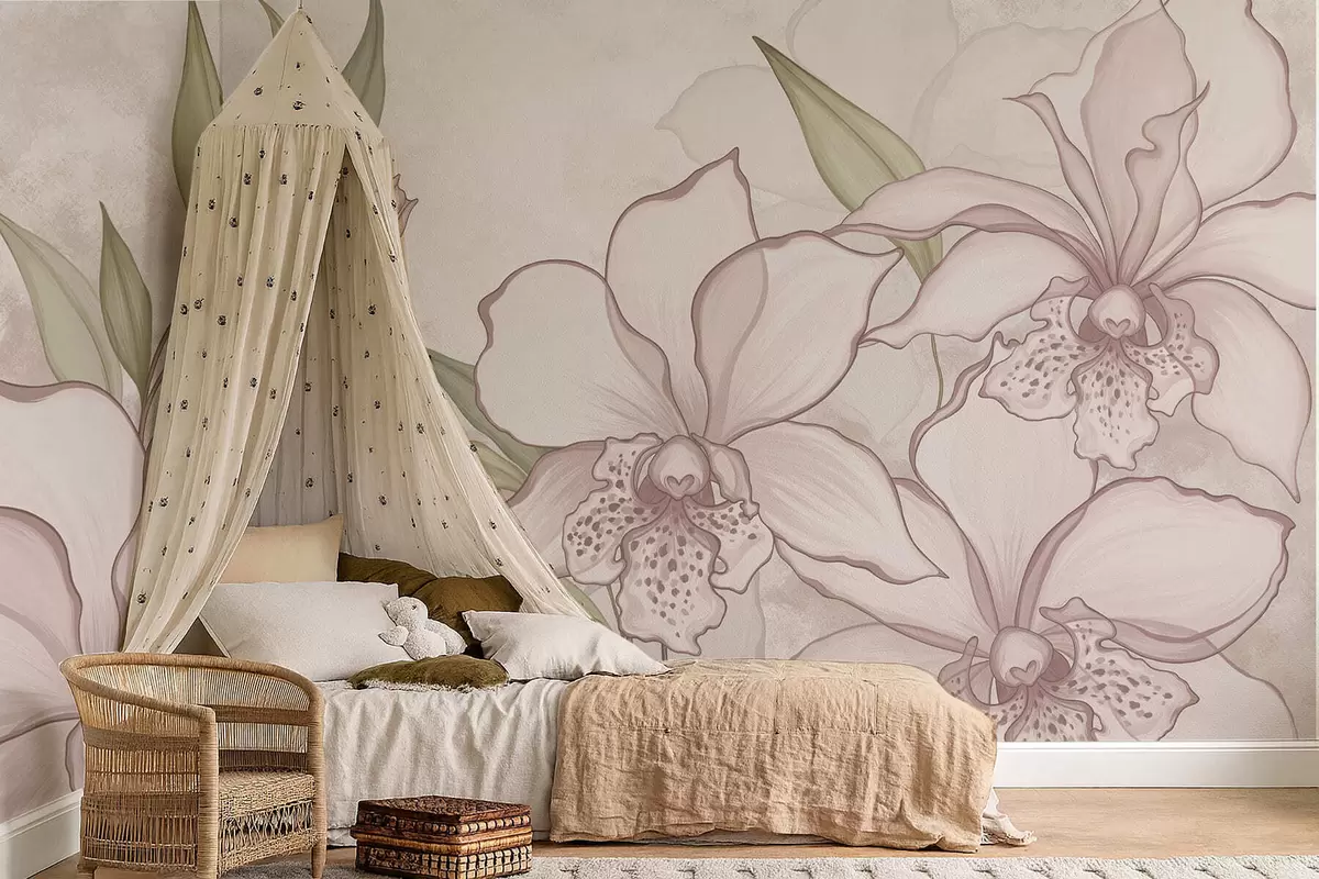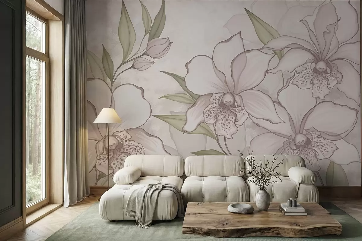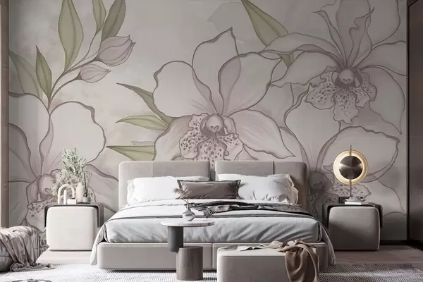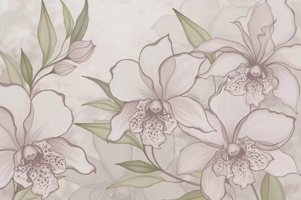 Фототапет Илюстрация на бледи орхидеи с листа на бежов фон Nr w05117
