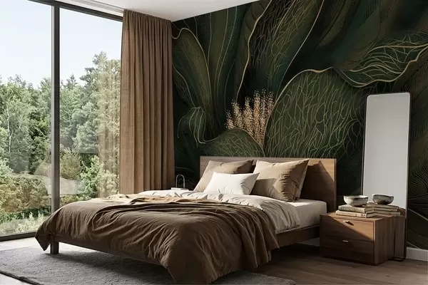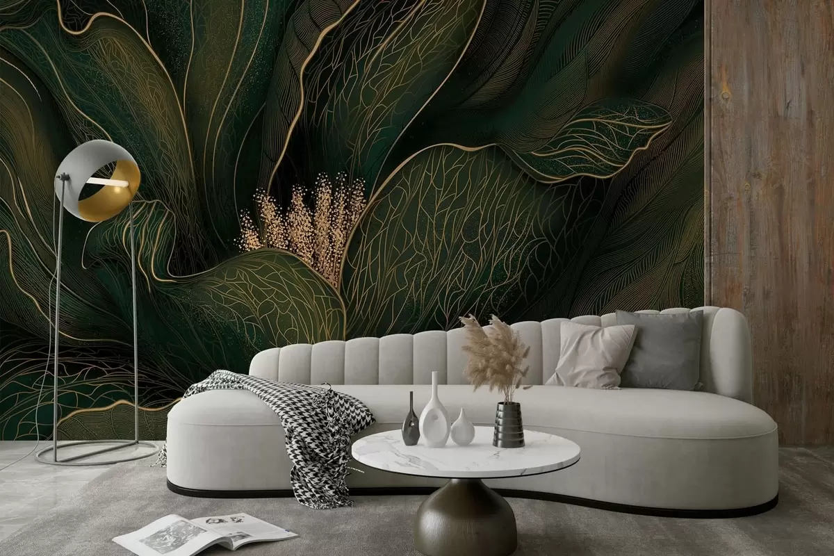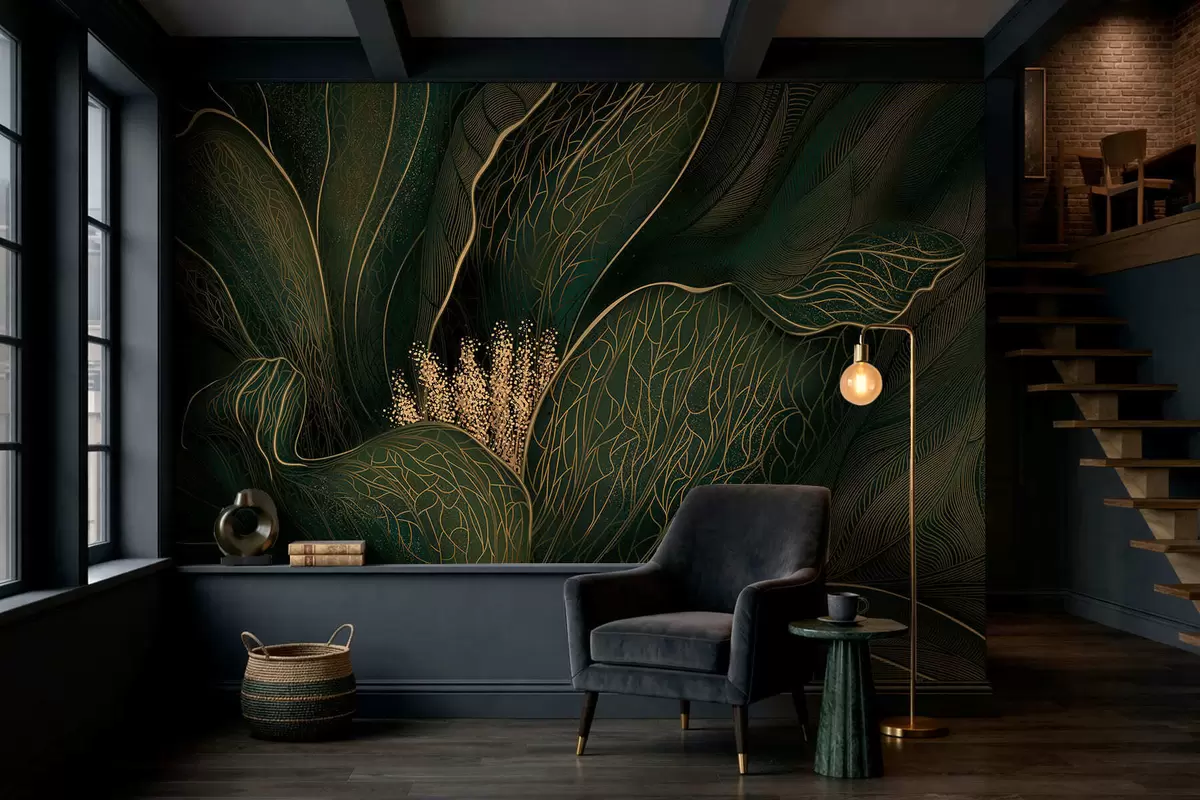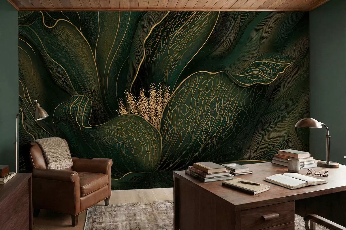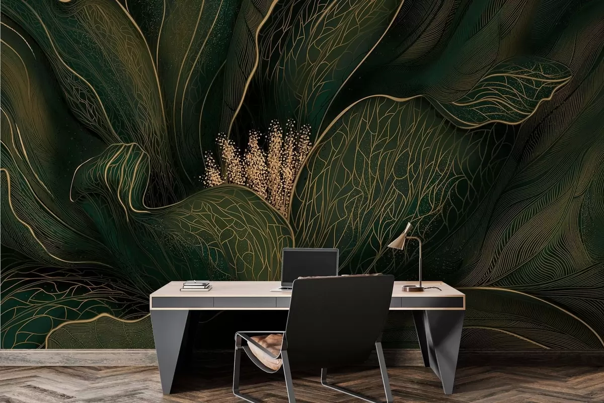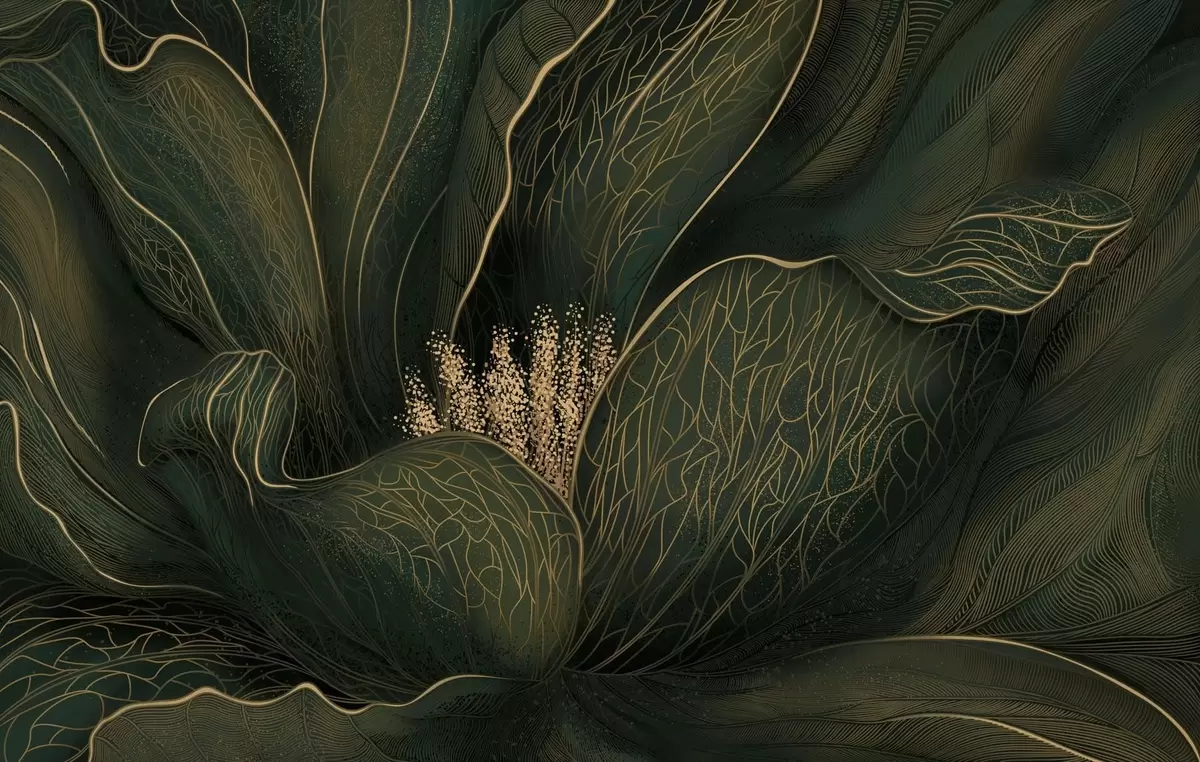 Фототапет Тъмнозелено абстрактно цвете с фини линии Nr w05119v1