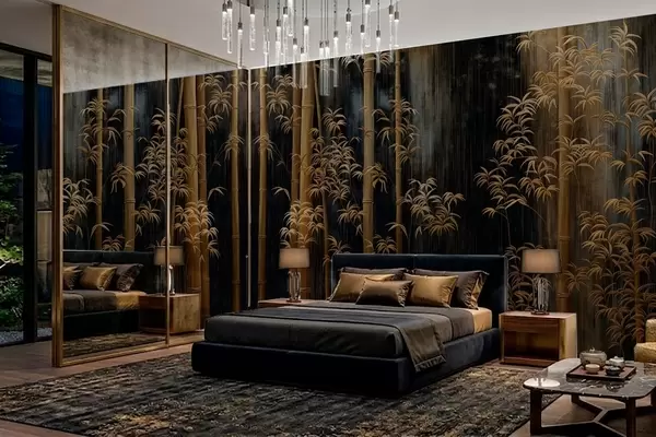 Фототапет Тъмен бамбук на черен фон Nr w05120