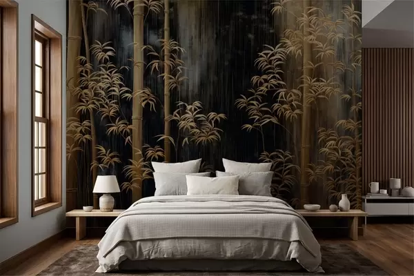 Фототапет Тъмен бамбук на черен фон Nr w05120