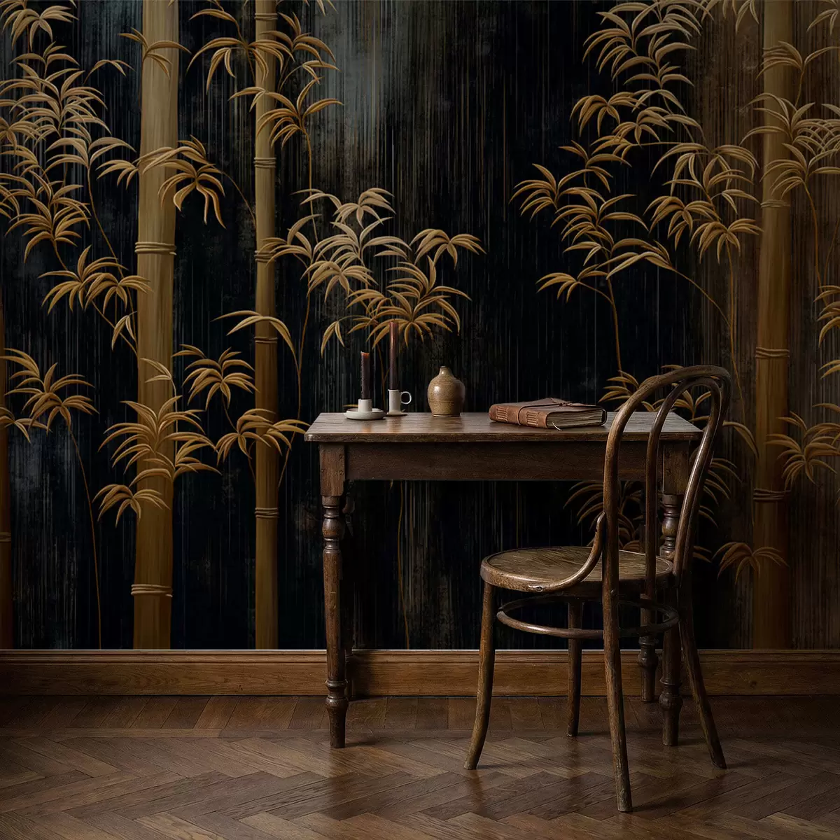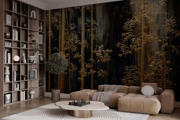 Фототапет Тъмен бамбук на черен фон Nr w05120