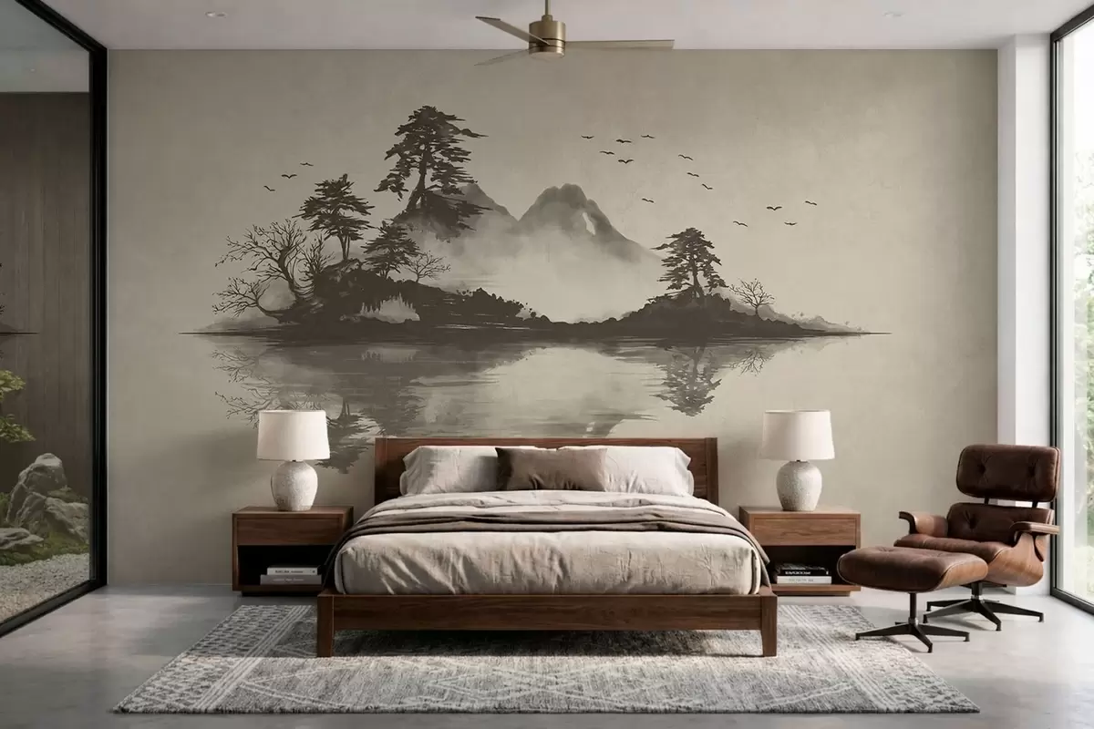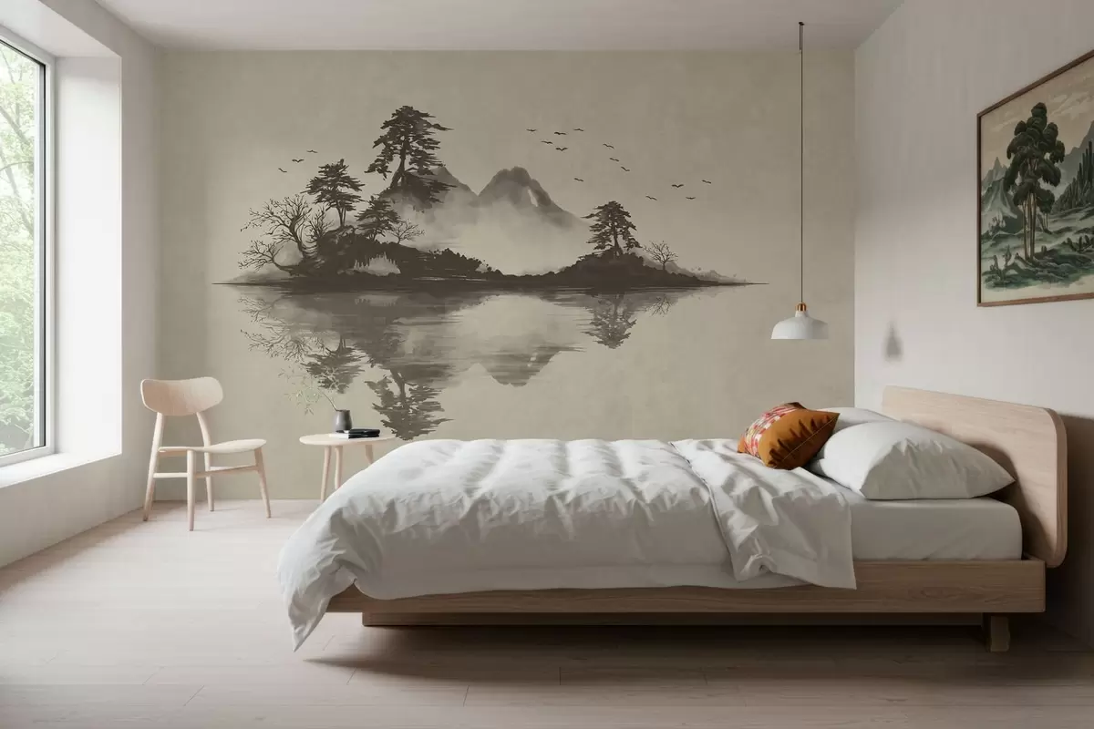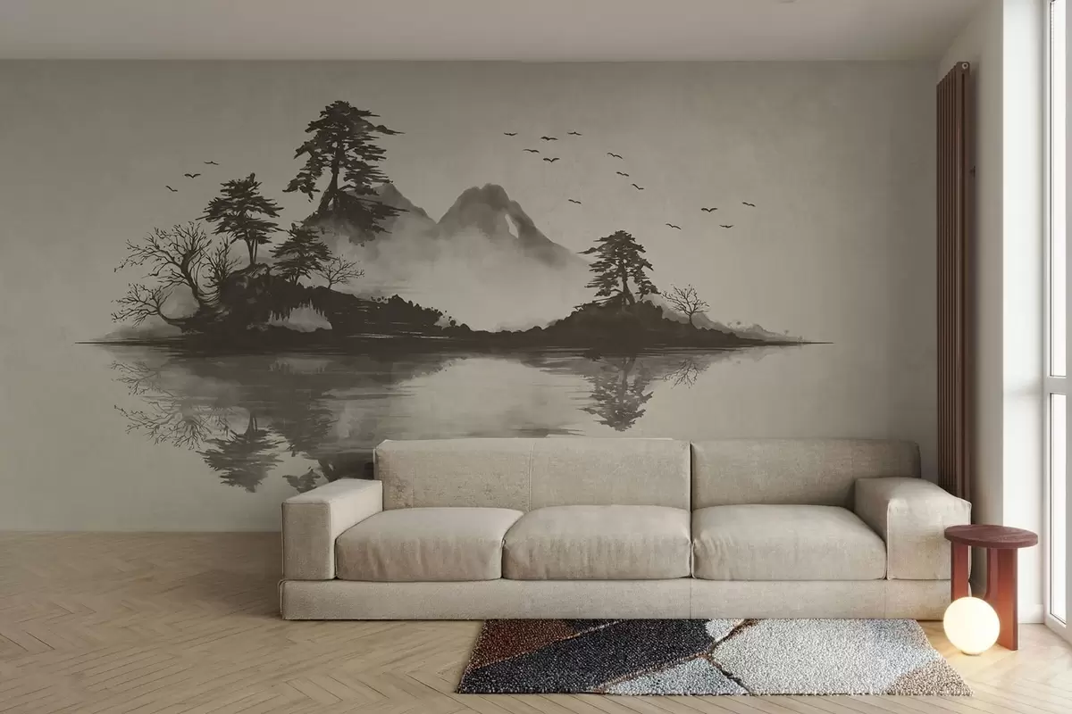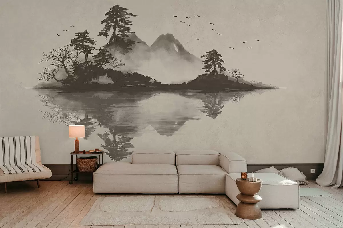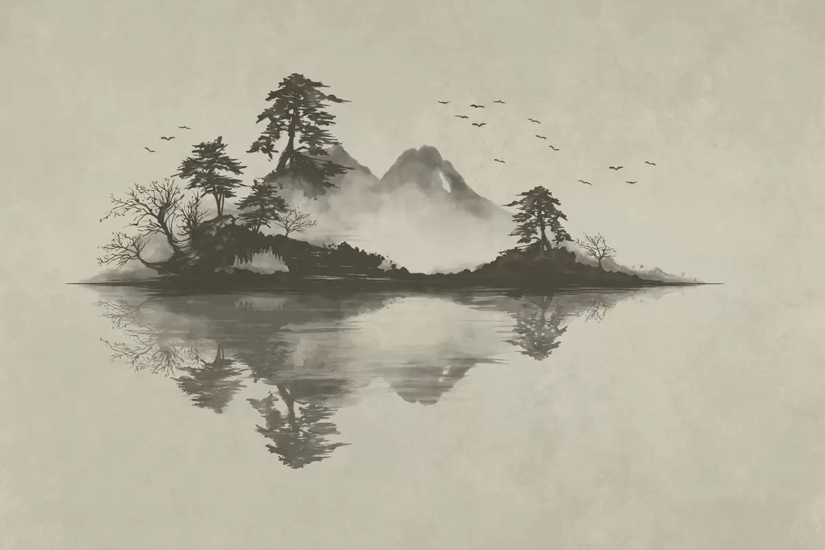 Фототапет Планински пейзаж в стил суми-е в нежни сиви тонове Nr w05124v1