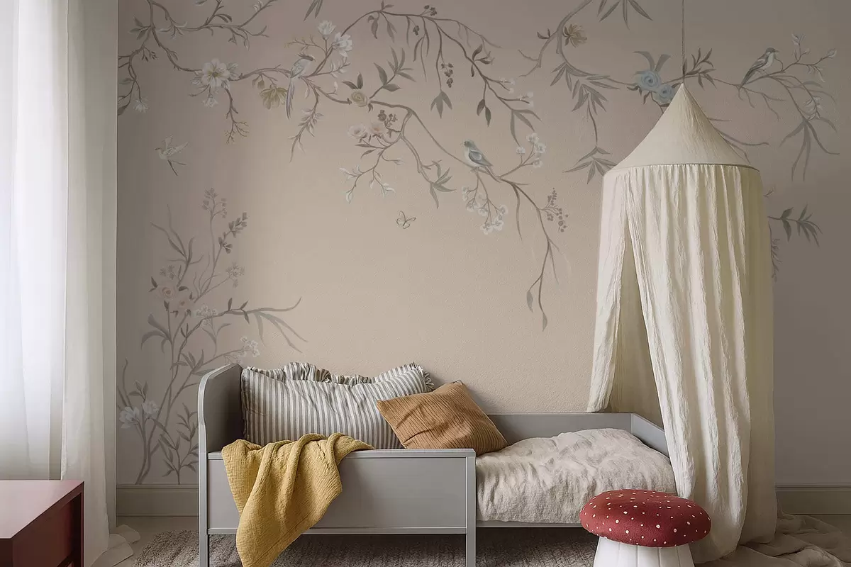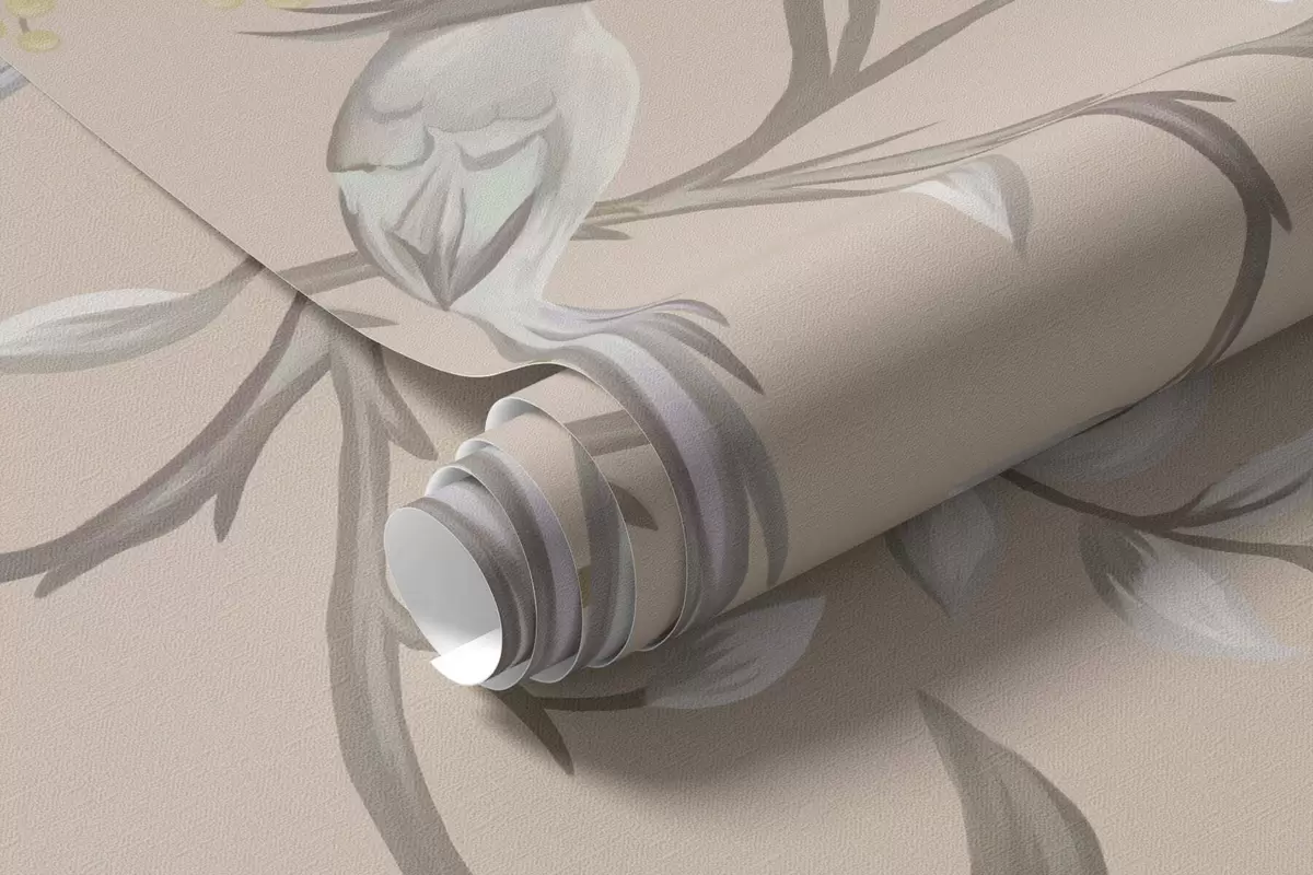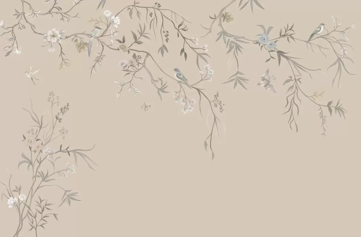 Фототапет Цветни клони с птици на топъл бежов фон Nr w05127v1