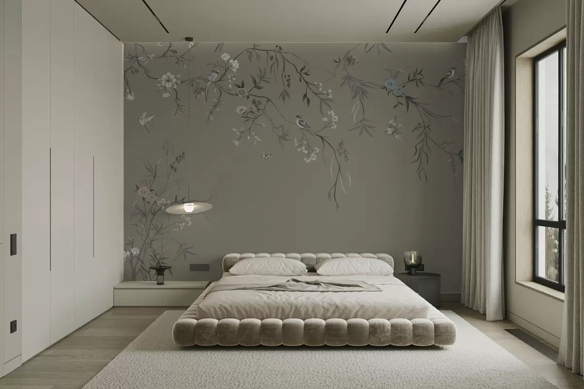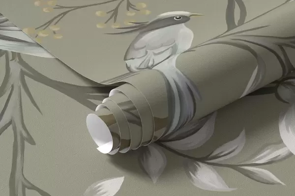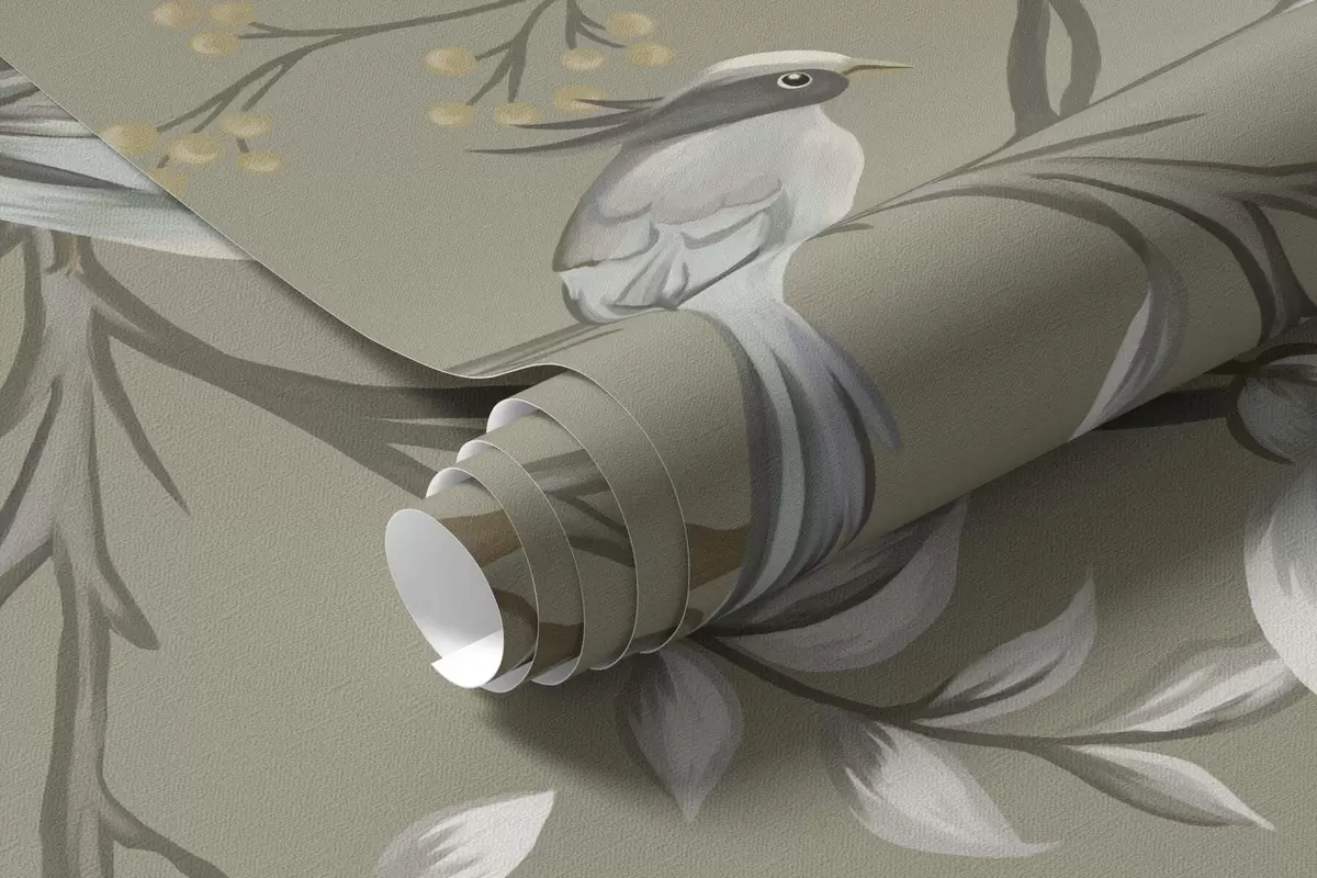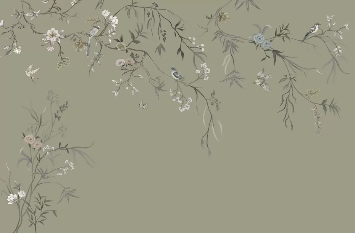 Фототапет Цветя с птици на сив фон Nr w05127v4