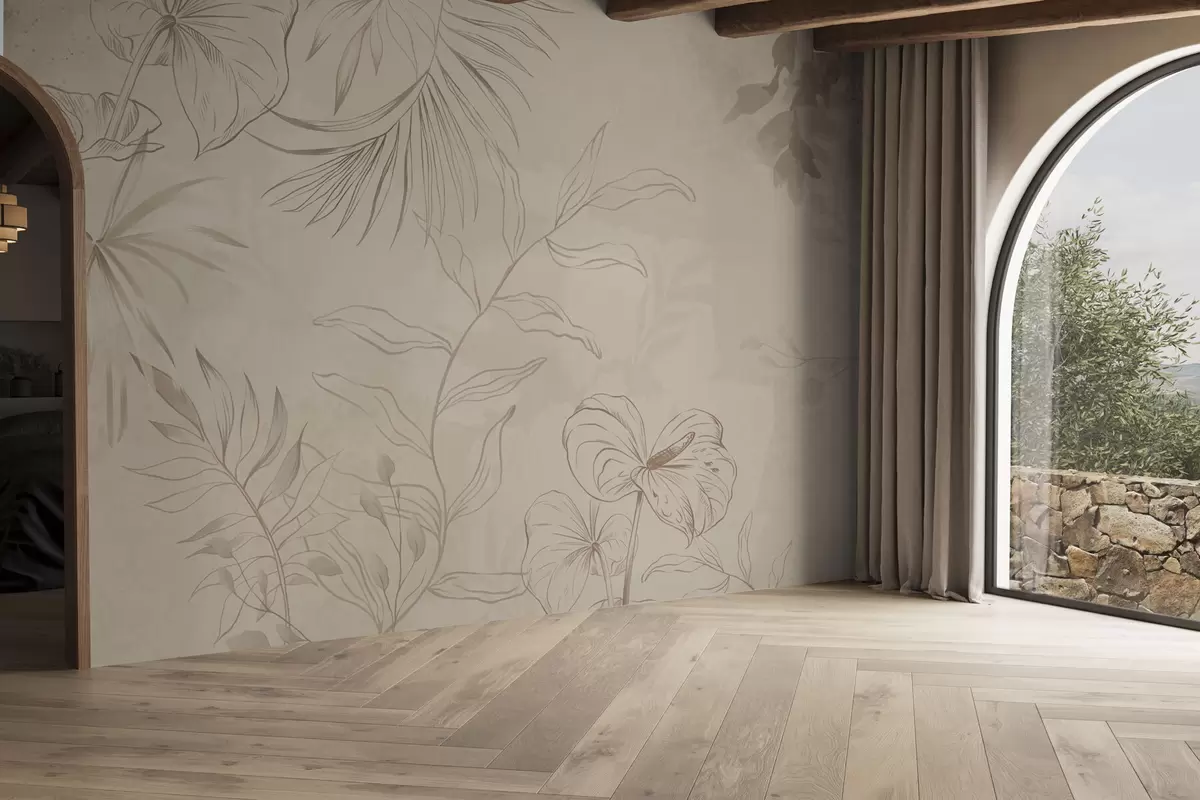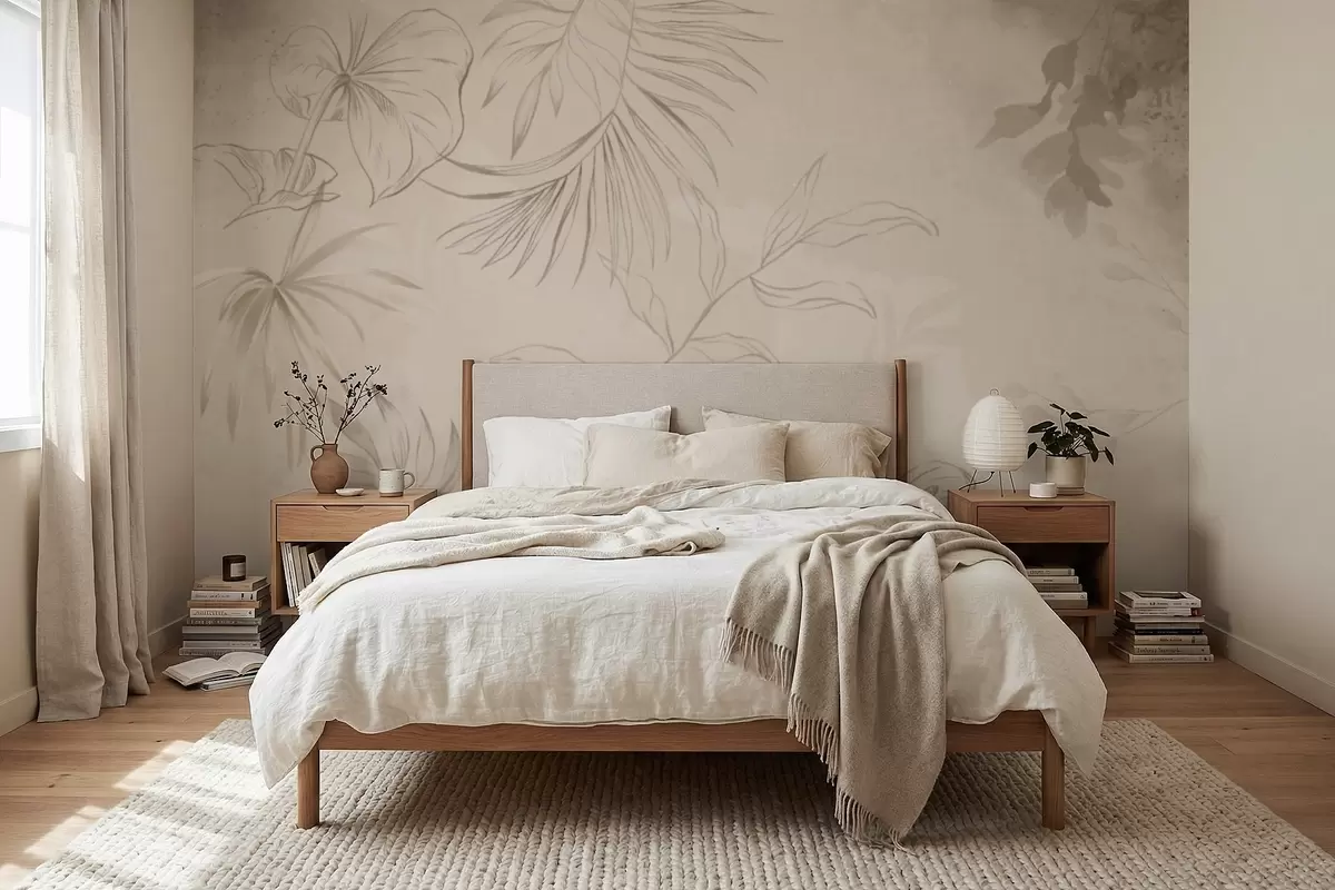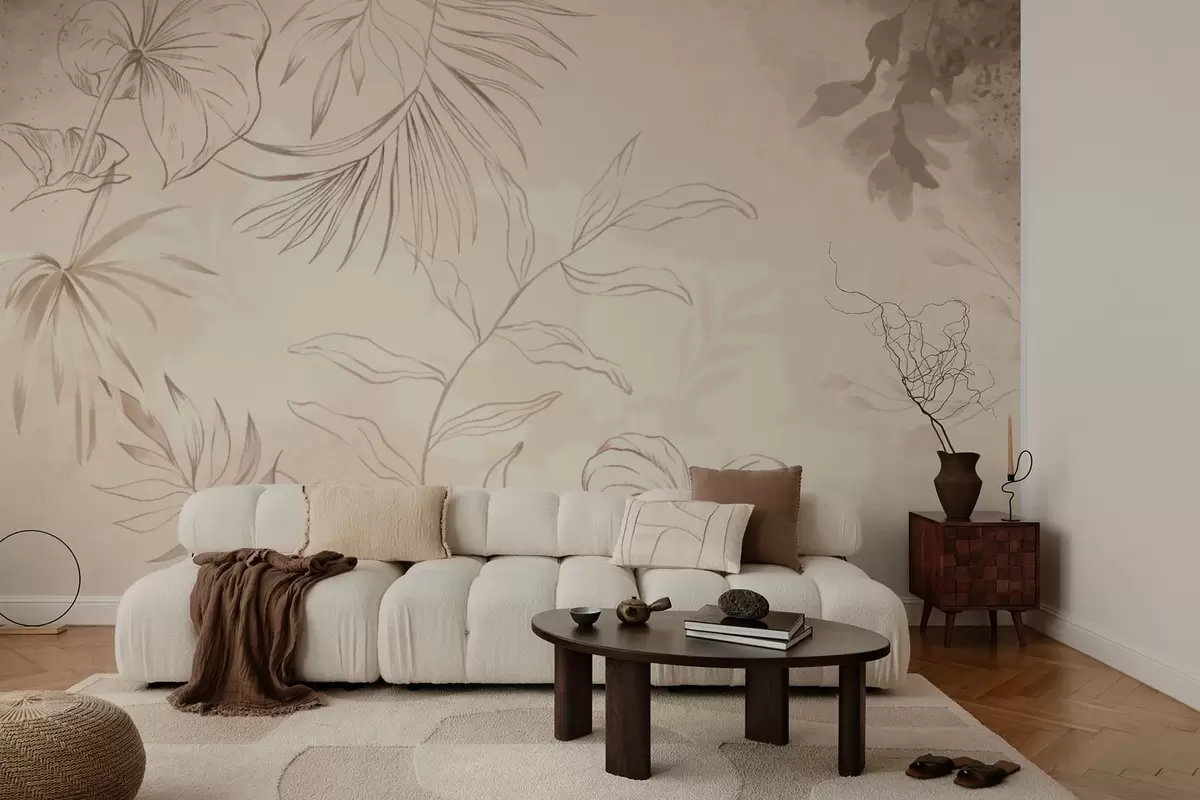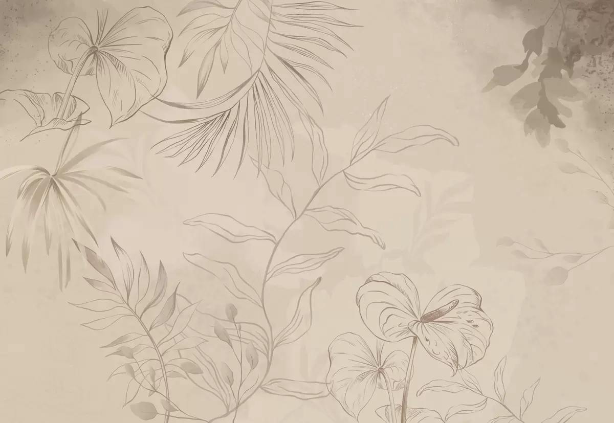 Фототапет Линейни растения на текстуриран бежов фон Nr w05128