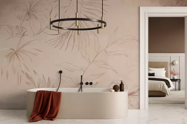 Фототапет Линейни растения на текстуриран бежов фон Nr w05128