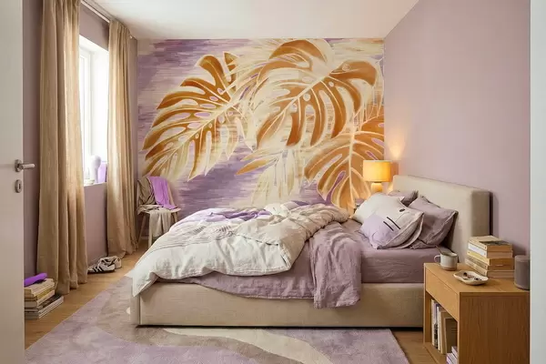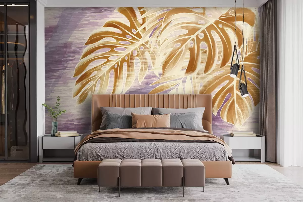 Фототапет Листа в топли оранжеви тонове на лилав фон Nr w05130v2