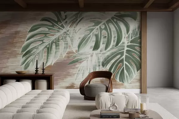 Фототапет Зелени листа върху топла текстурирана абстрактна основа Nr w05130v3
