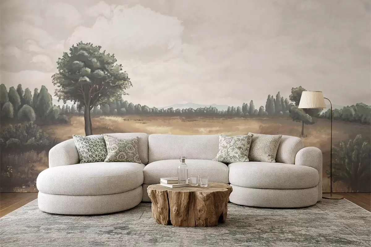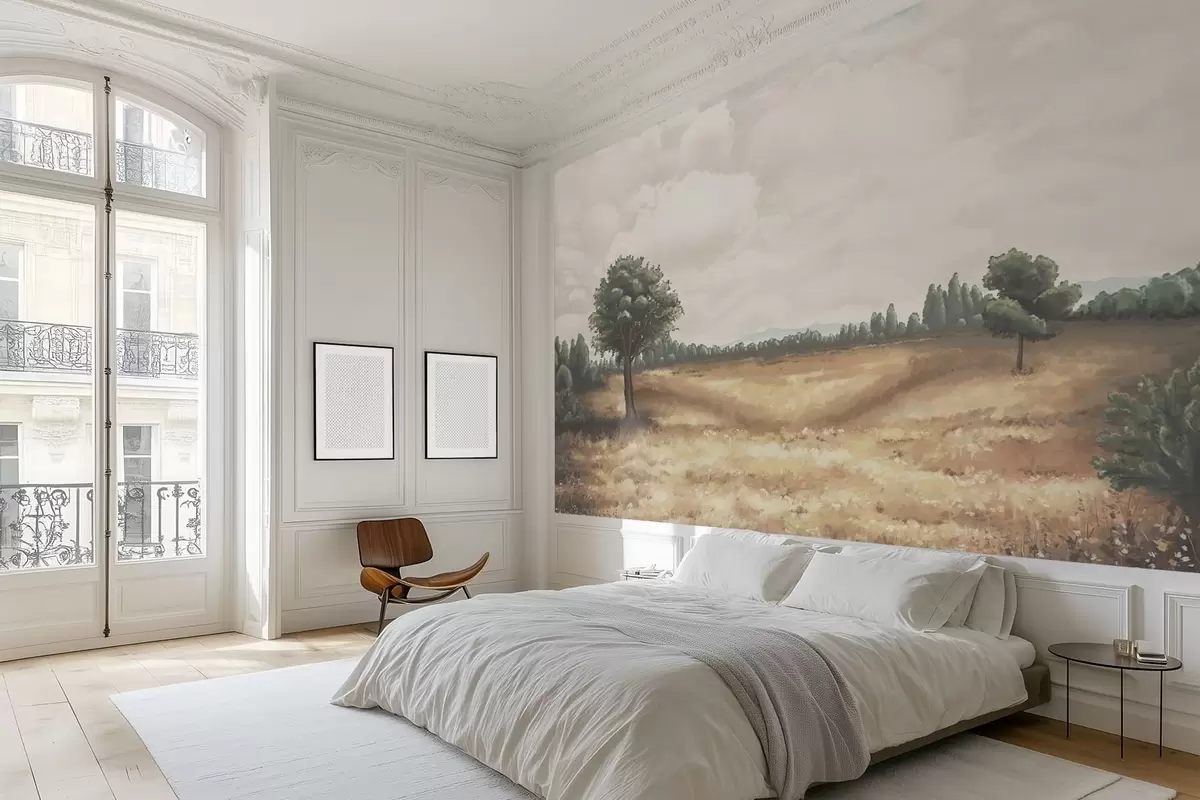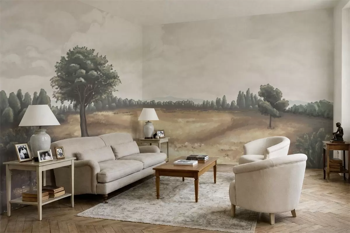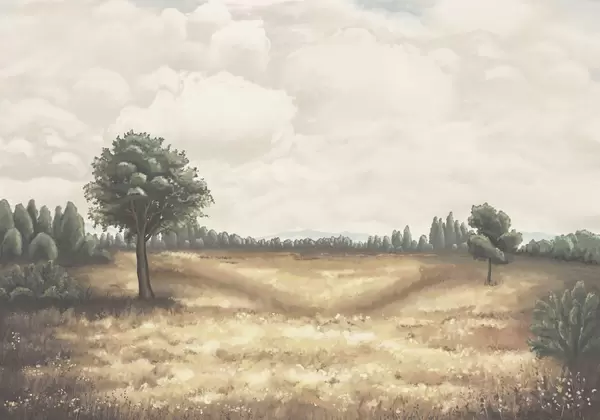 Фототапет Нарисуван пейзаж с дървета и открито поле Nr w05131