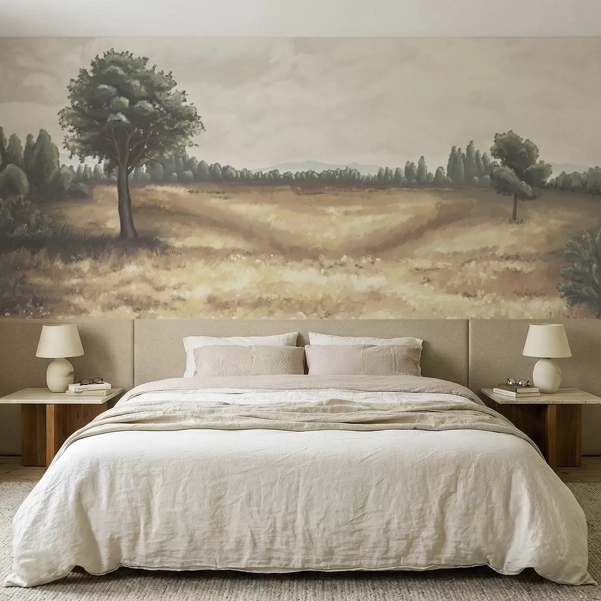 Фототапет Нарисуван пейзаж с дървета и открито поле Nr w05131