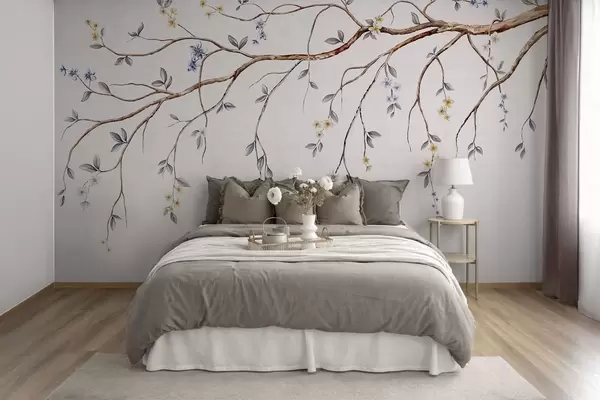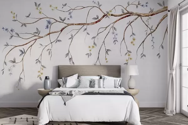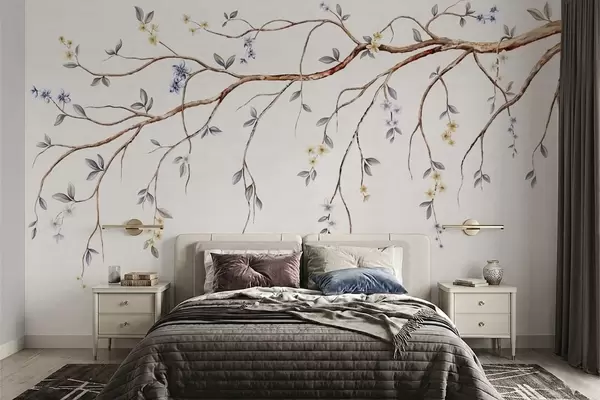 Фототапет Тънки клонки с малки цветя на светъл фон Nr w05145