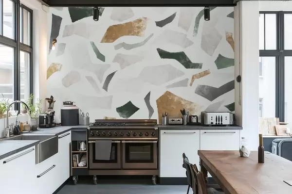 Фототапет Абстрактни фрагменти с текстура в зелени и бежови нюанси w05146