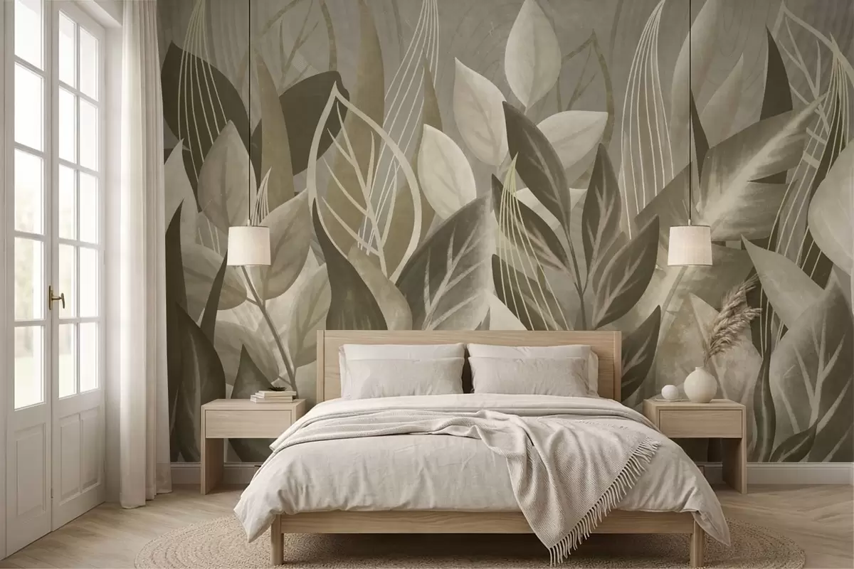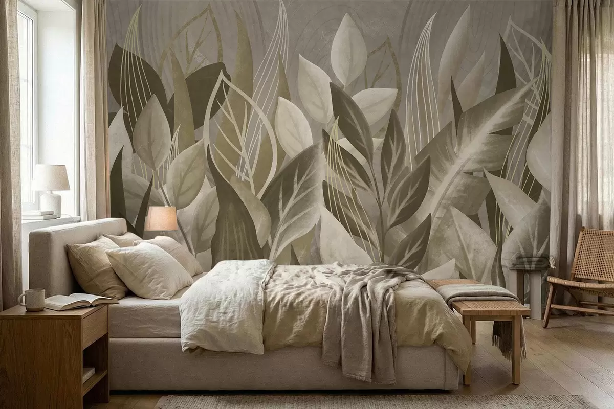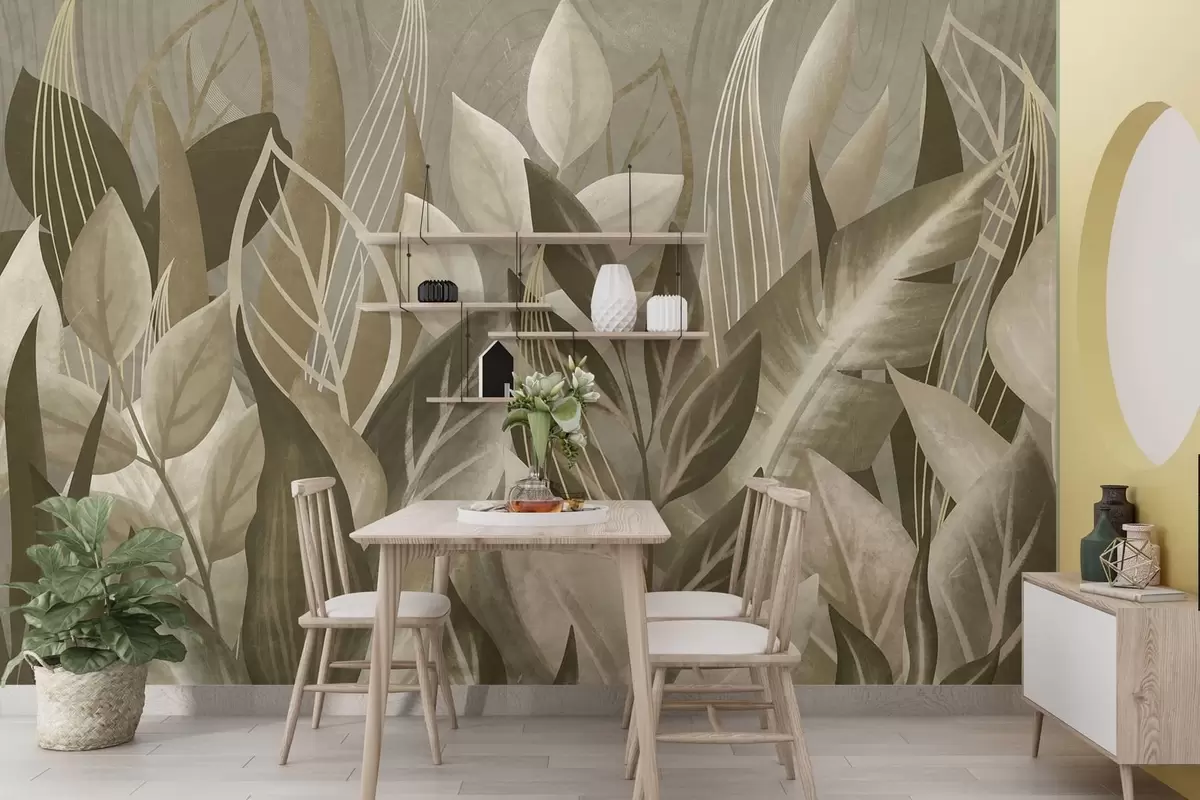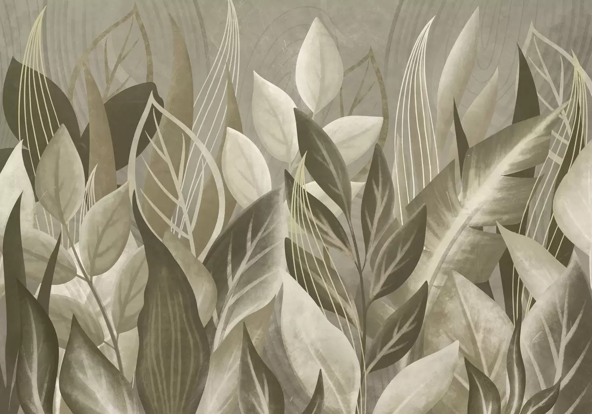 Фототапет Абстрактни листа в бежови и зелени нюанси Nr w05148