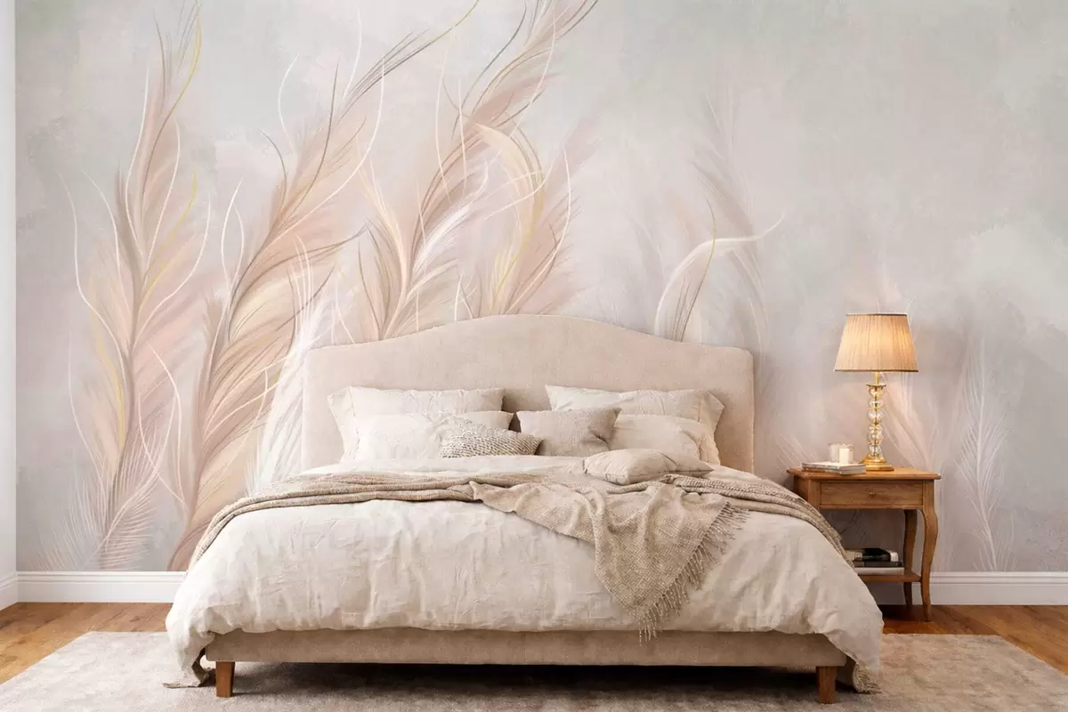 Фототапет Меки абстрактни пера в светли неутрални тонове Nr w05153