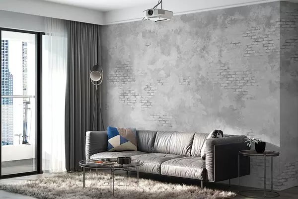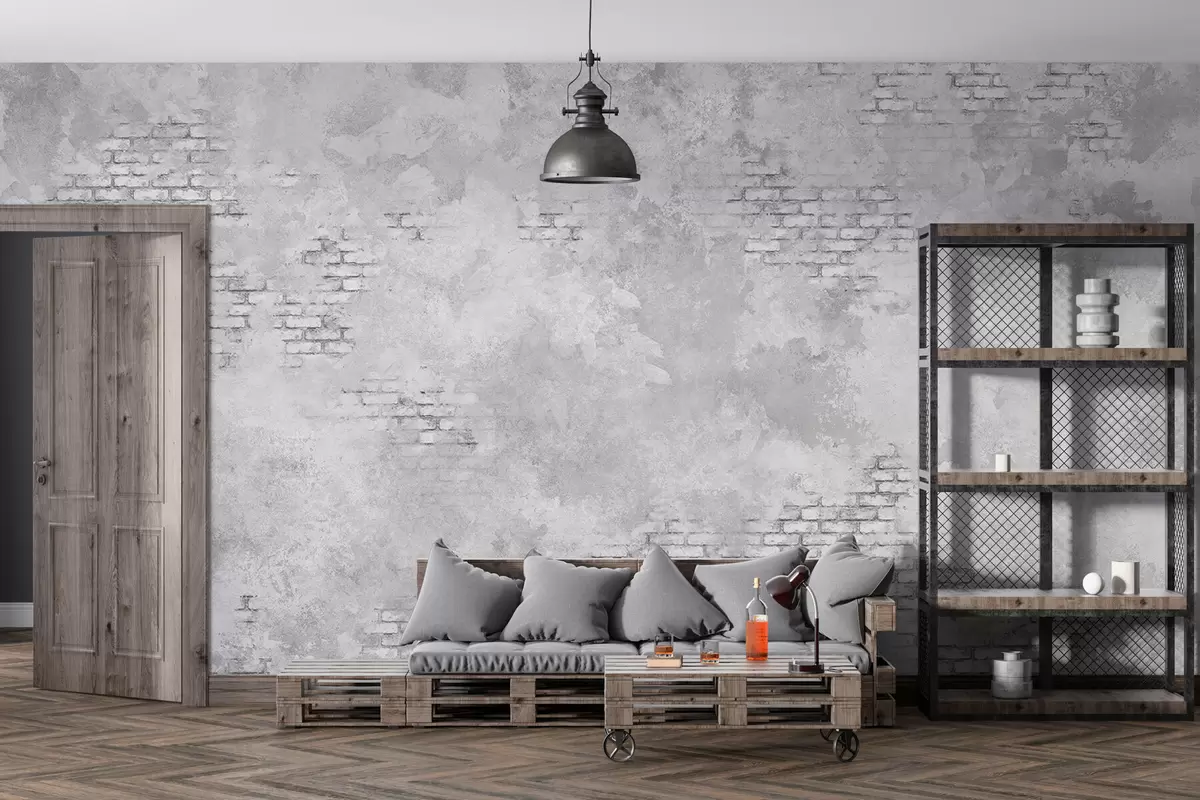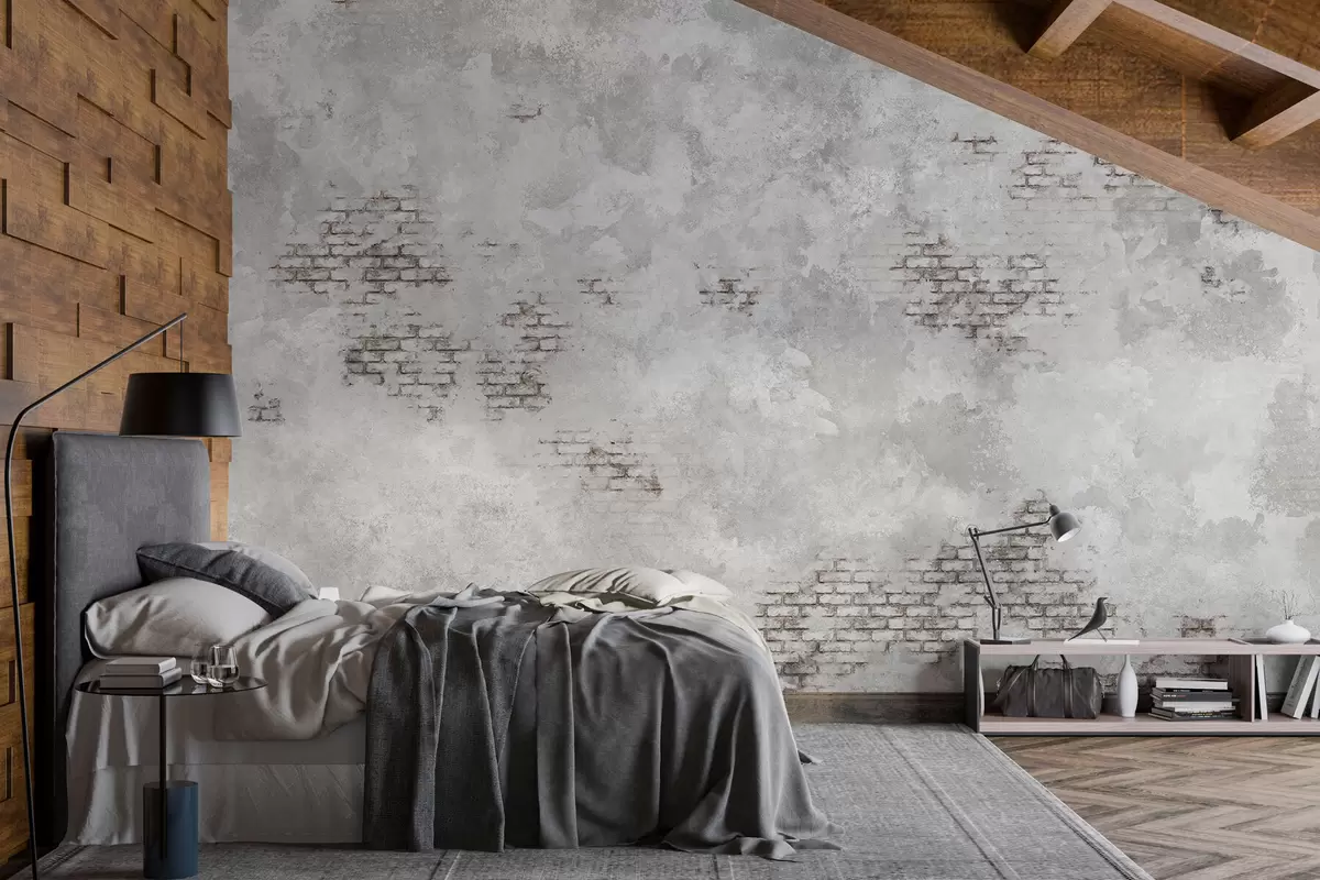 Фототапет Мазилка в сив гръндж стил с участъци от непокрита тухла Nr w05161v2
