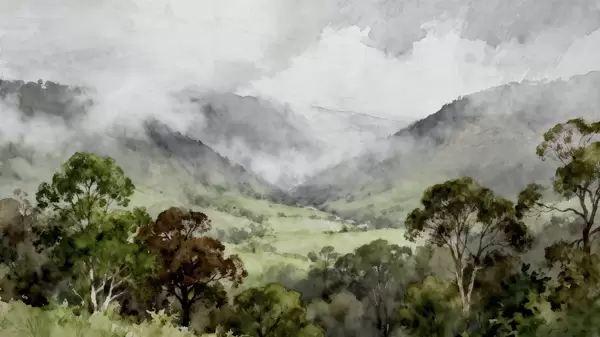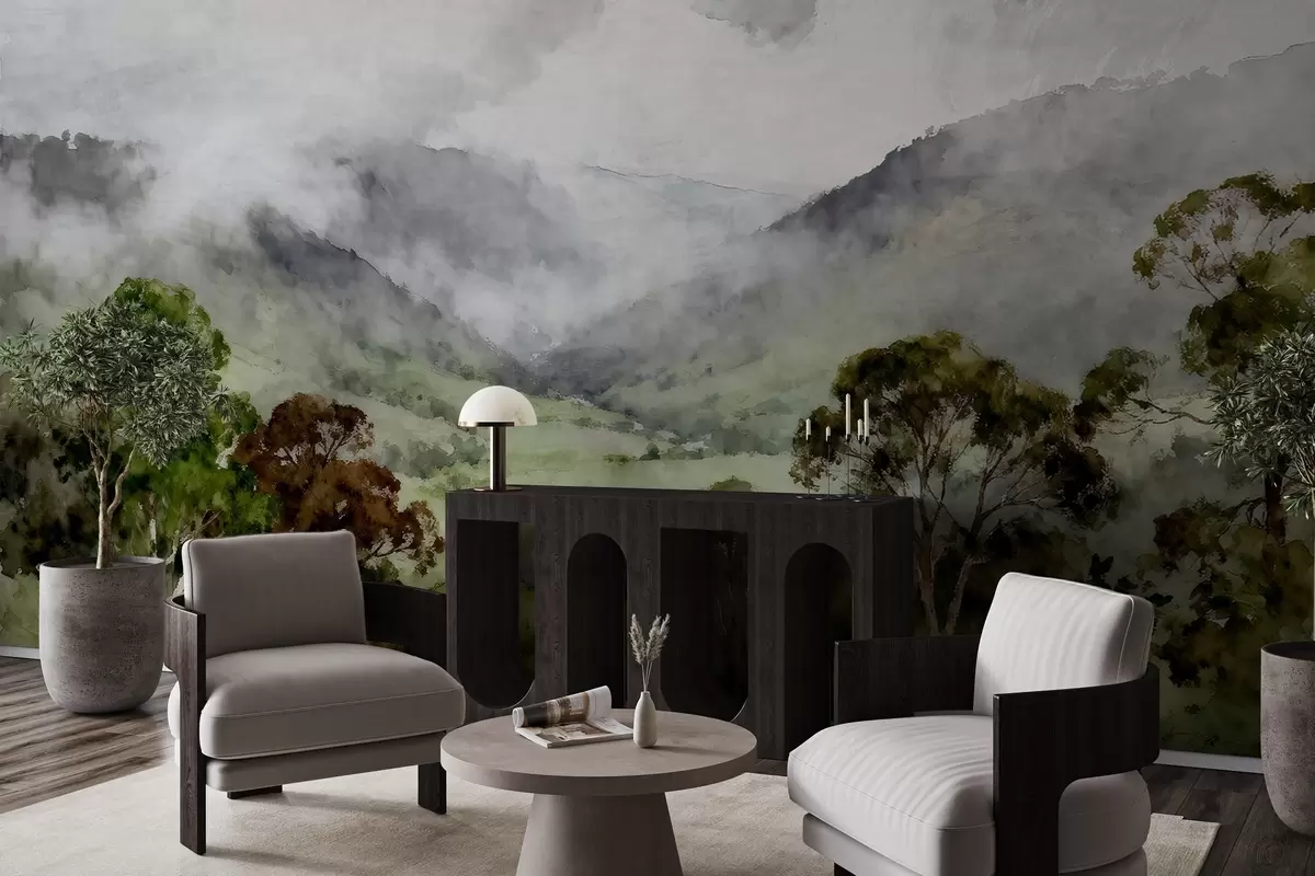 Фототапет Нарисуван пейзаж в мъглата Nr w05185