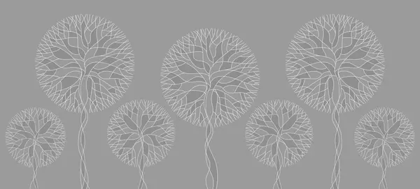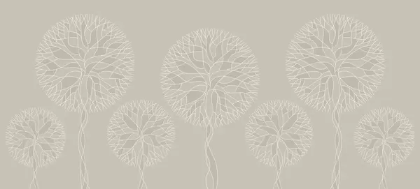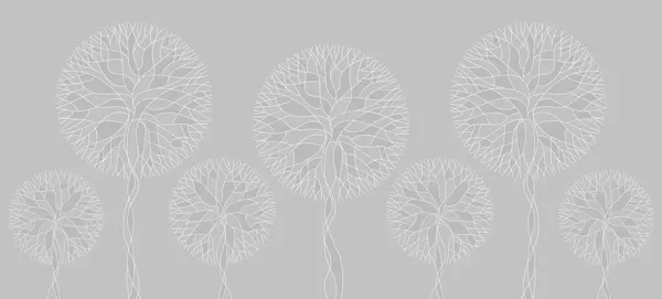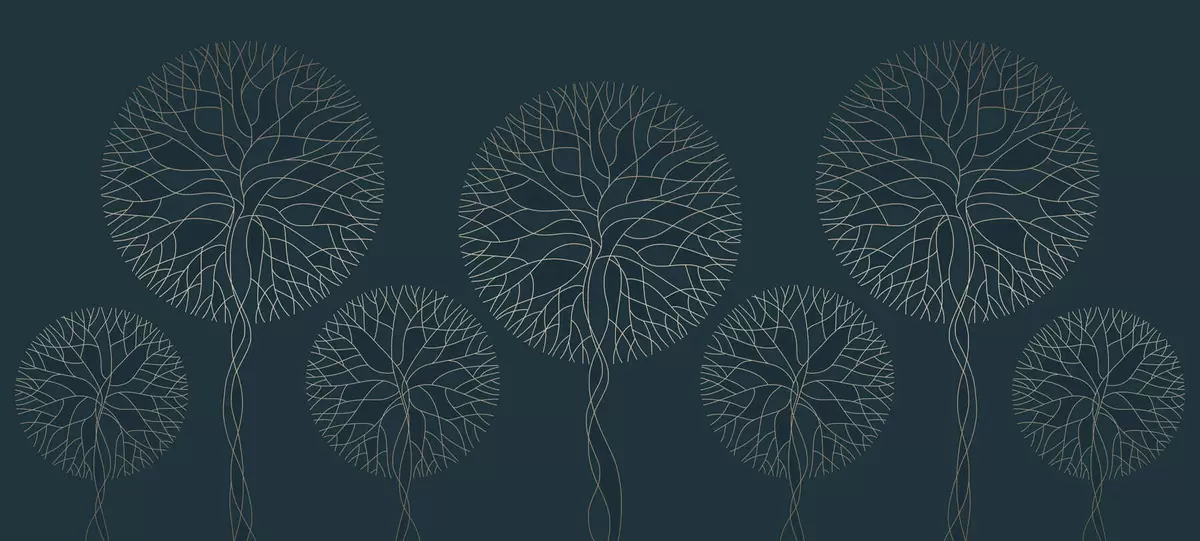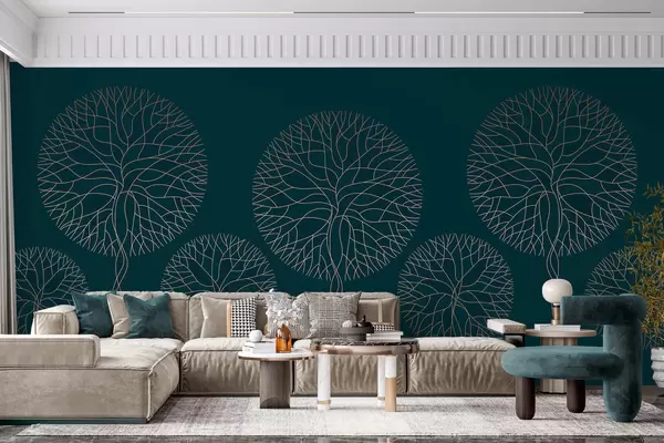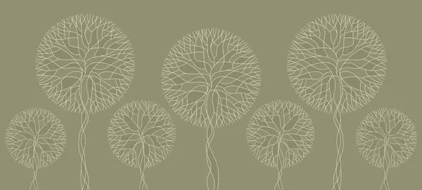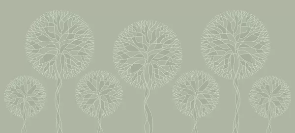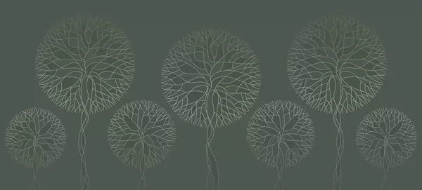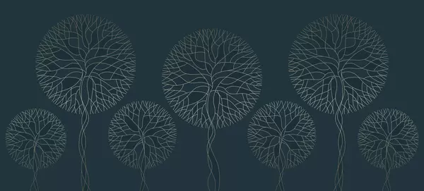 Фототапет Фантазийни линейни дървета с буйни корони в елегантни тъмни смарагдови тонове Nr w05213