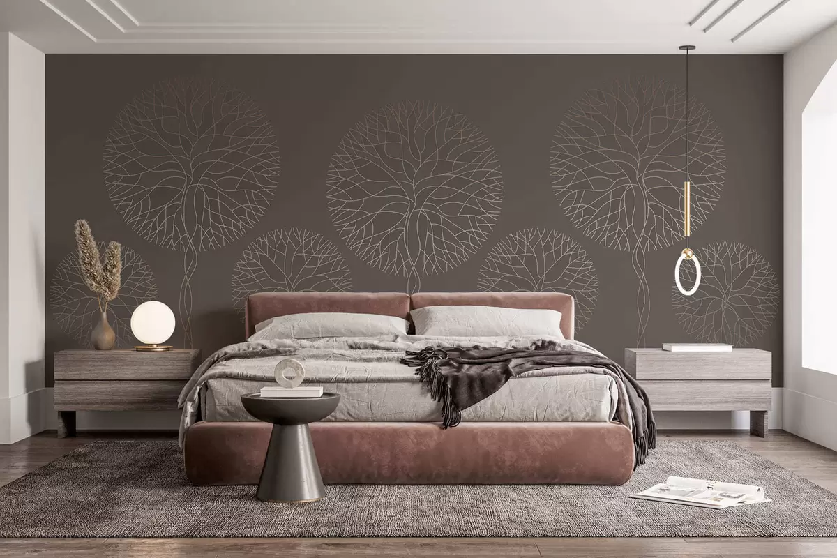 Фототапет Фантазийни линейни дървета с буйни корони в елегантни мока тонове Nr w05213v1