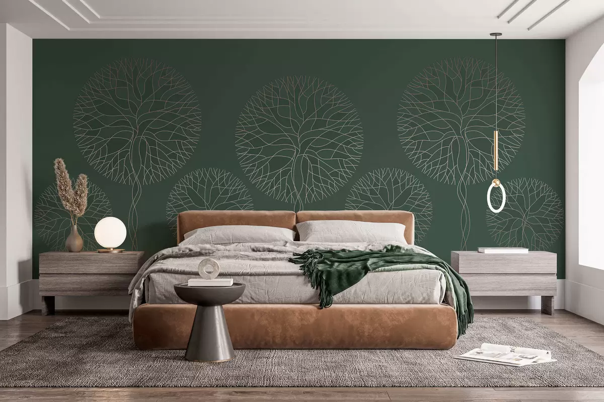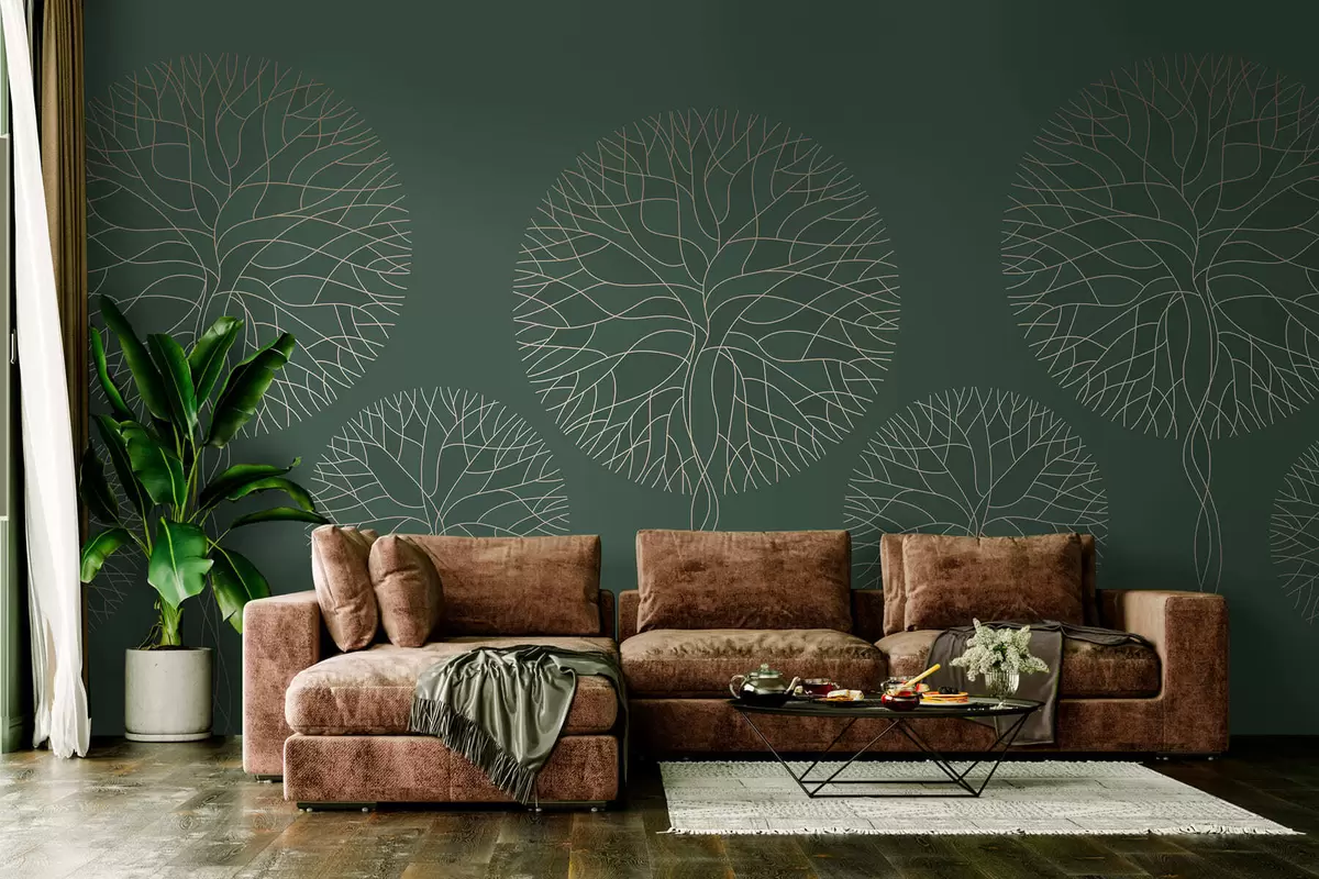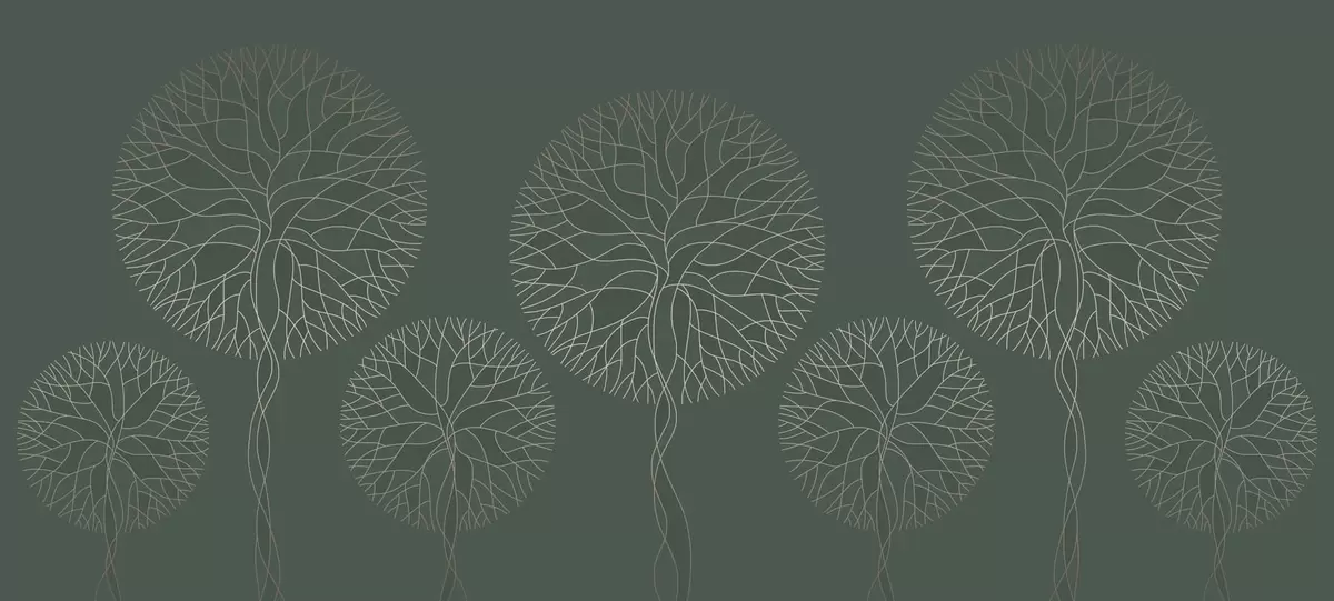 Фототапет Фантастични линейни дървета с буйни корони в елегантни тъмнозелени тонове Nr w05213v2
