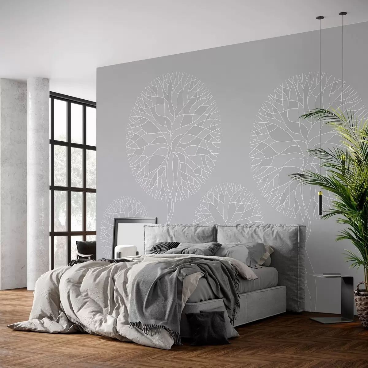 Фототапет Фантастични линейни дървета с буйни корони в светлосиви тонове Nr w05213v4