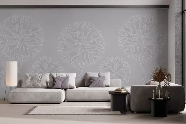 Фототапет Фантастични линейни дървета с буйни корони в светлосиви тонове Nr w05213v4