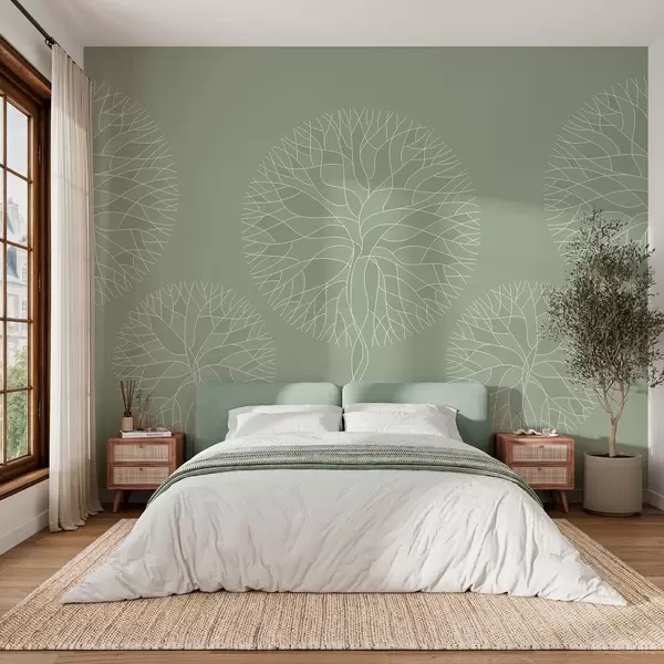 Фототапет Фантастични линейни дървета с буйни корони в светлозелени нюанси Nr w05213v6