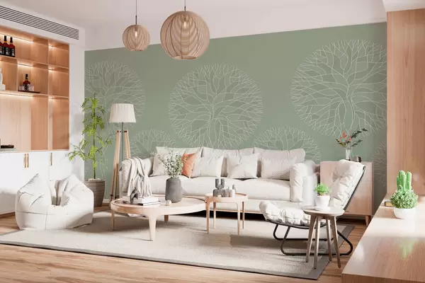 Фототапет Фантастични линейни дървета с буйни корони в светлозелени нюанси Nr w05213v6