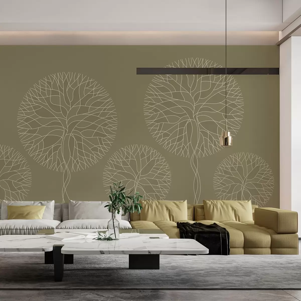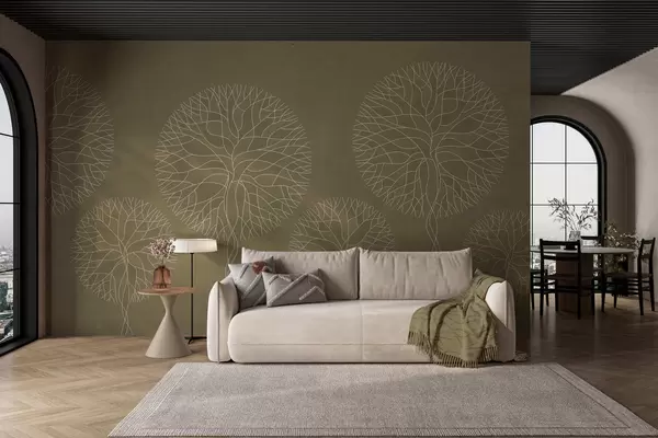 Фототапет Фантазийни линейни дървета с буйни корони в каки тонове Nr w05213v7