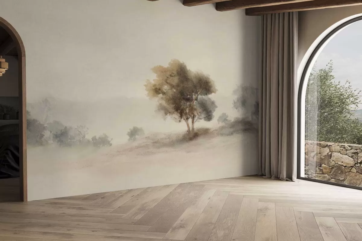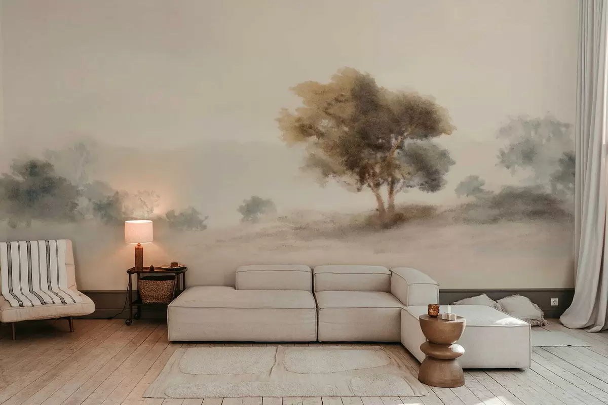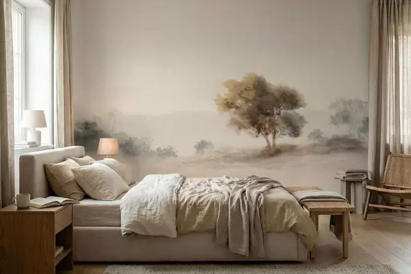 Фототапет Минималистичен пейзаж с едно самотно дърво в мъглата Nr w05223