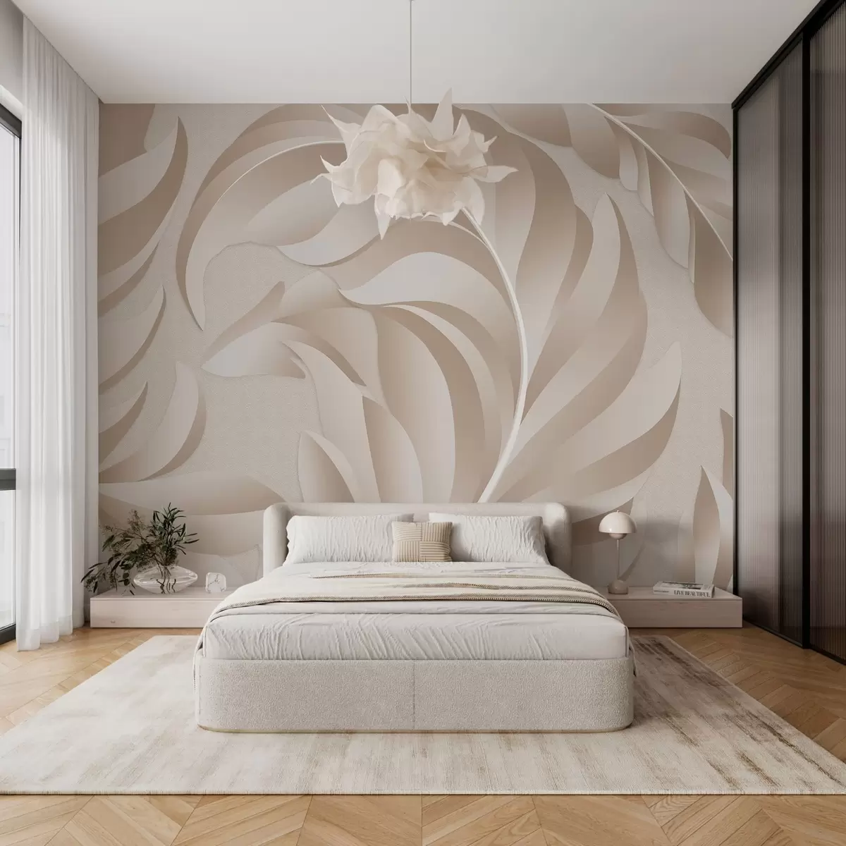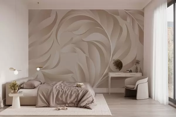 Фототапет големи текстурирани пера в бежови и прахови нюанси w05231