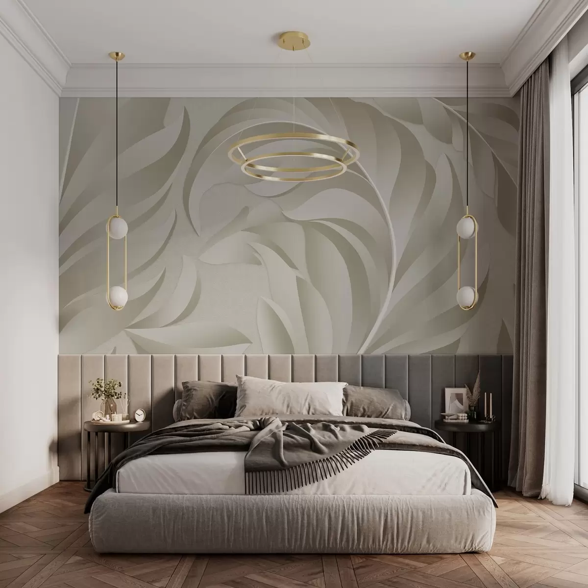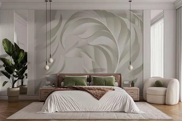 Фототапет големи текстурирани пера в бежови и маслинени нюанси Nr w05231v1