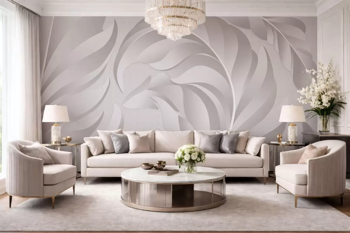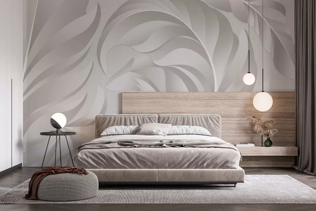 Фототапет големи текстурирани пера в перлени нюанси Nr w05231v2