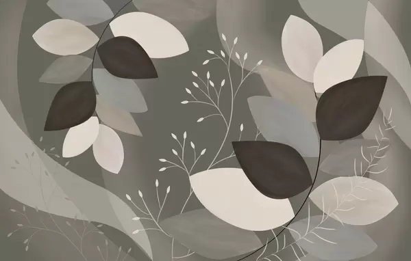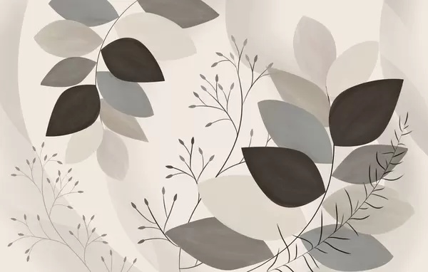 Фототапет листа и треви в нюанси на бежово, сиво и кафяво Nr w05237