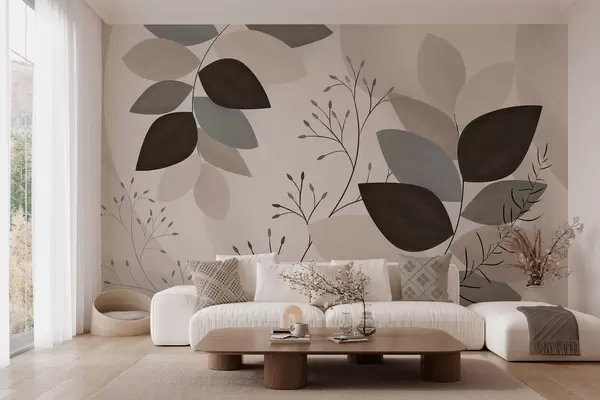 Фототапет листа и треви в нюанси на бежово, сиво и кафяво Nr w05237