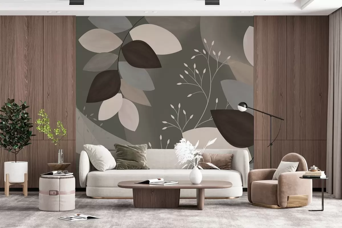 Фототапет листа и треви в тъмни нюанси Nr w05237v1