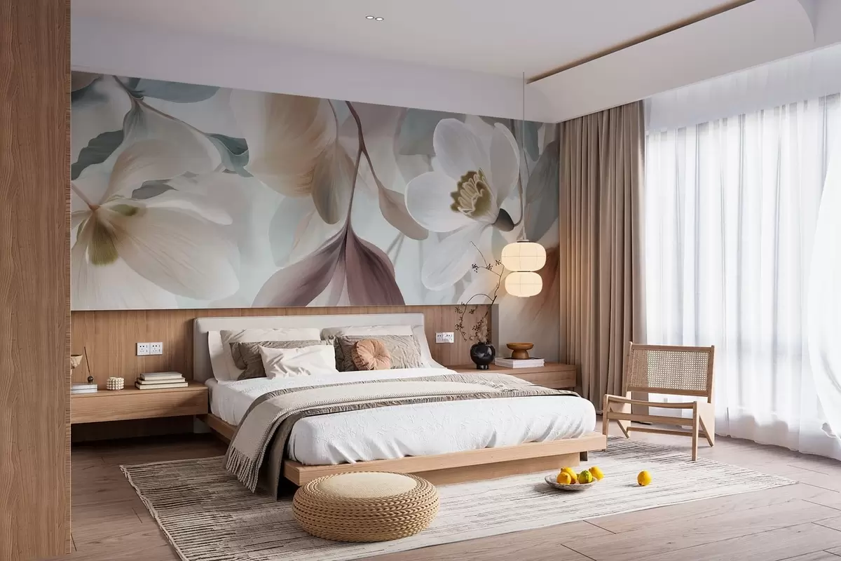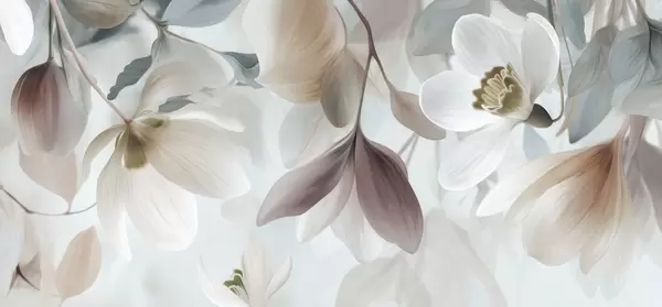 Фототапет деликатна композиция от цветя и листа в пастелни нюанси Nr w05240