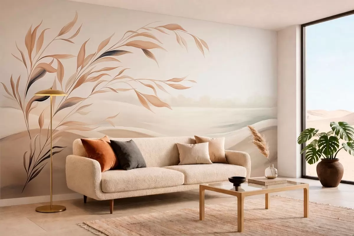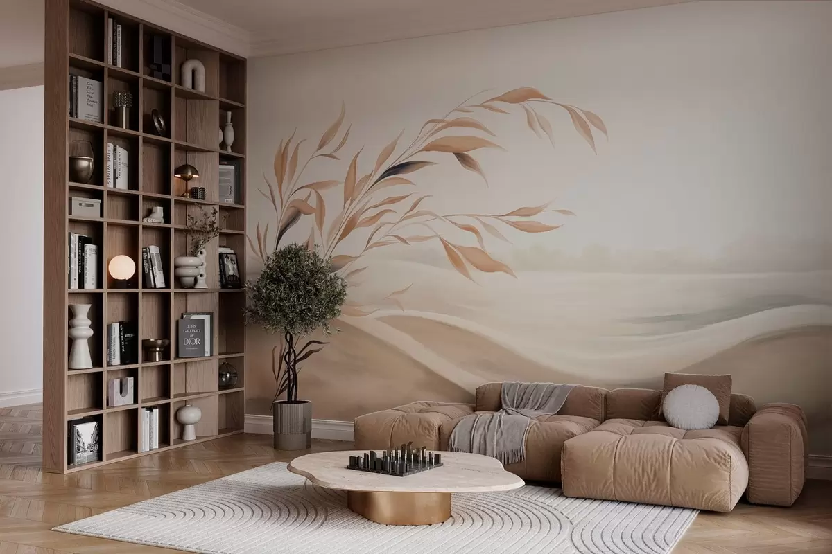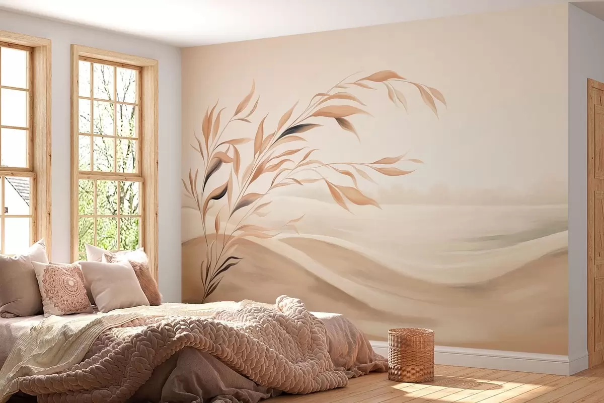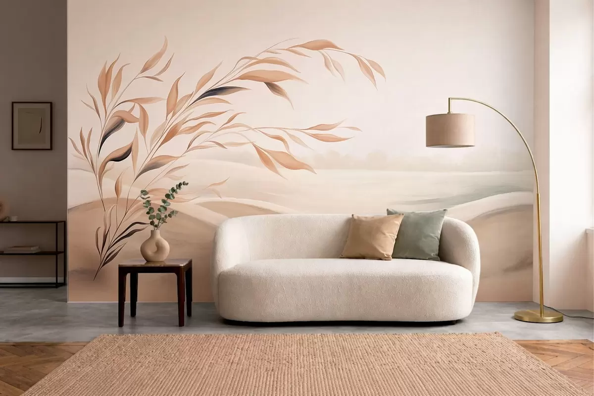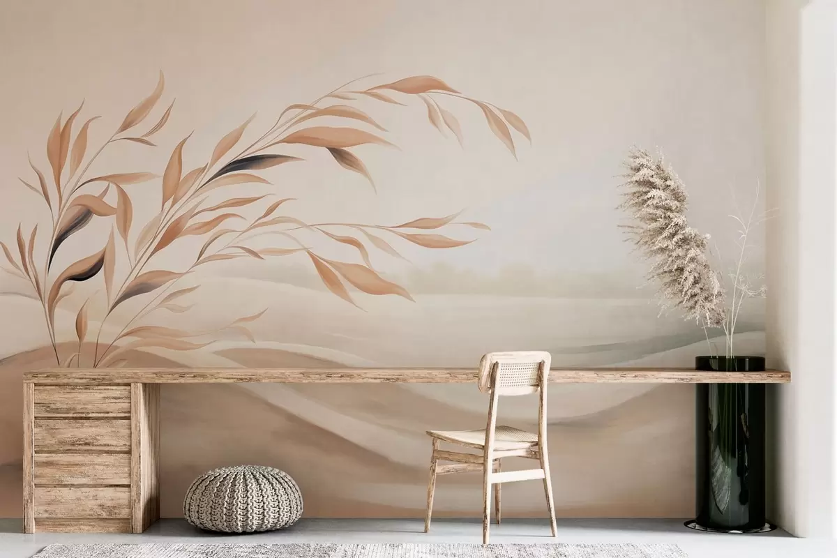 Фототапет Нежен пейзаж с клон над хълмове в светлобежови нюанси Nr w05297