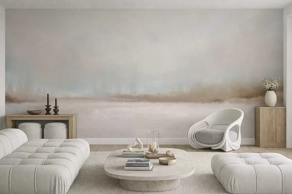 Фототапет Мъглив пейзаж с езеро и гора Nr w05319