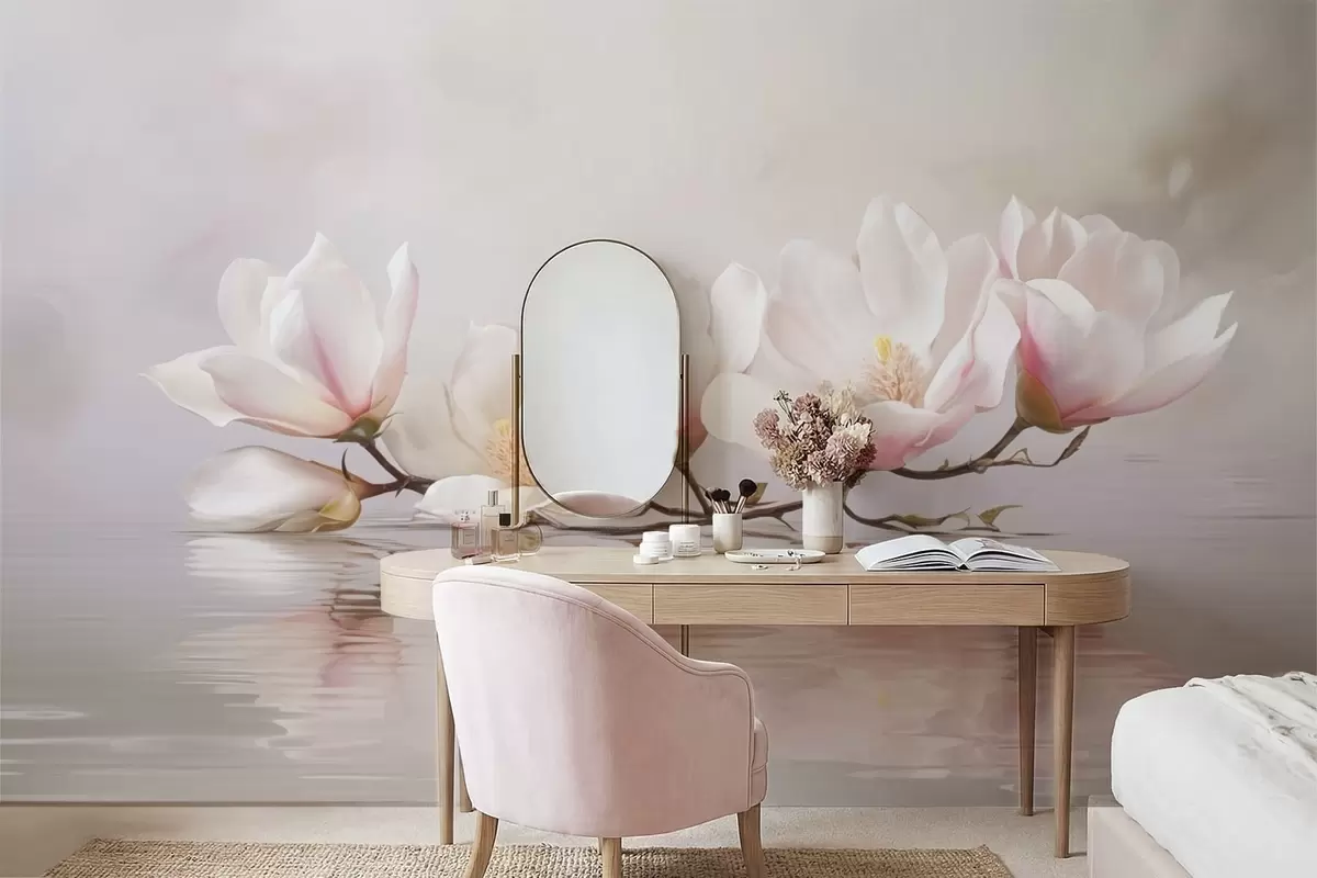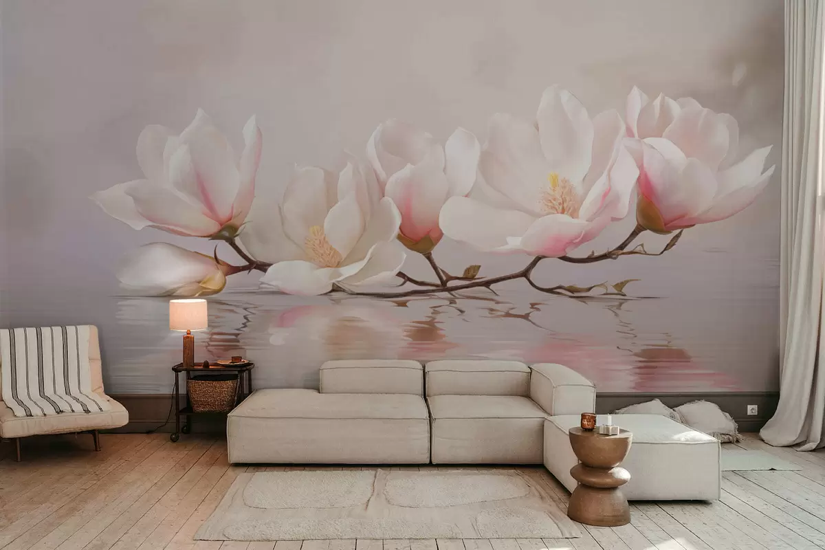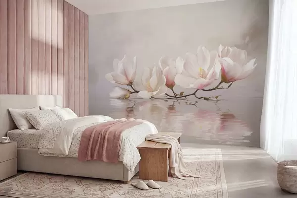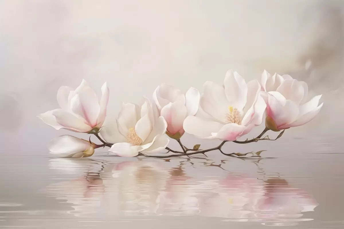 Фототапет Клон от магнолия с цветове над спокойното отражение във водата Nr w05353v1