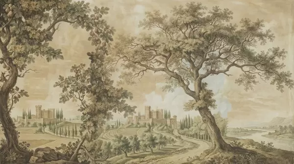 Фототапет Пасторален пейзаж в бродерен стил Nr w05359