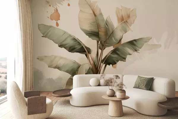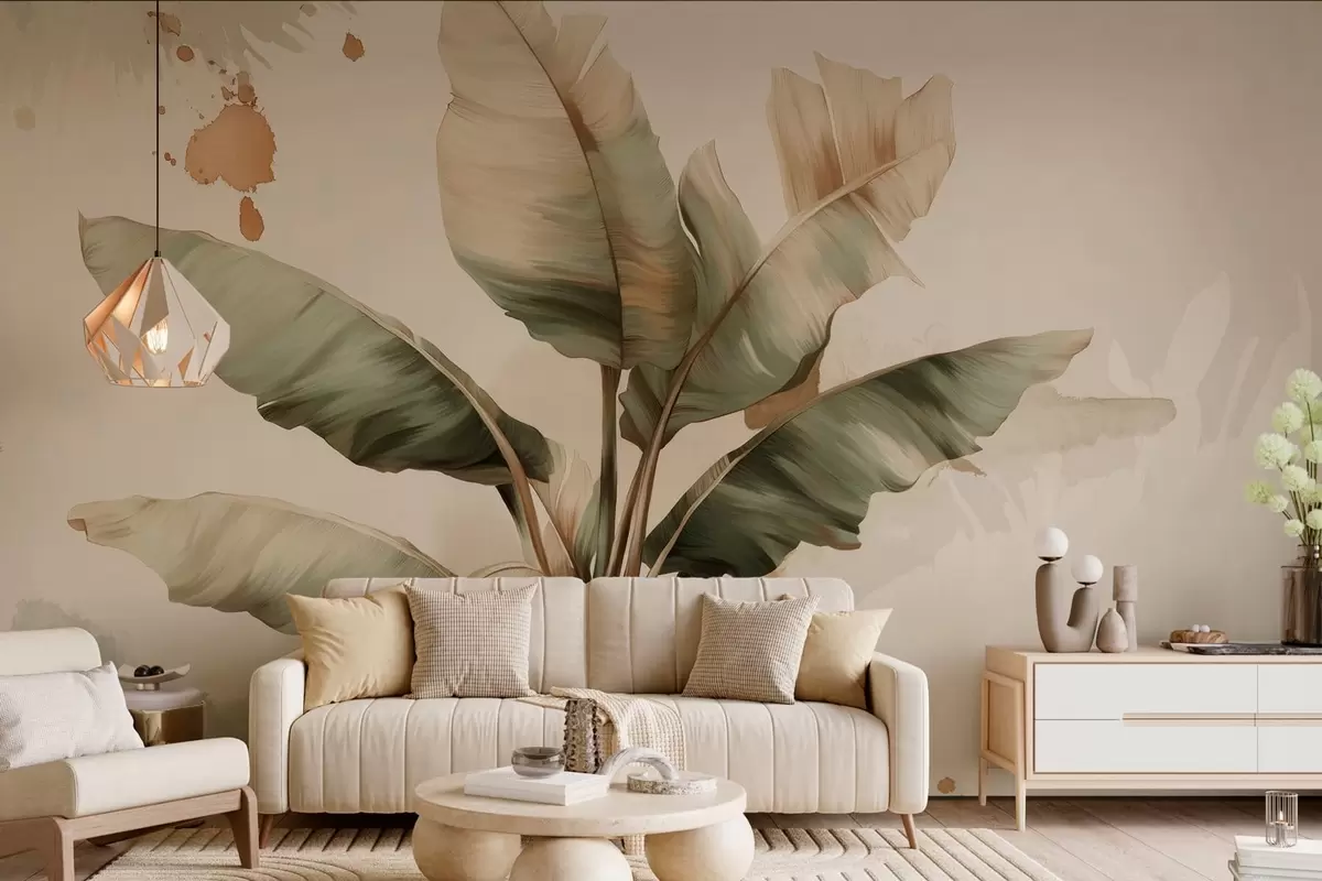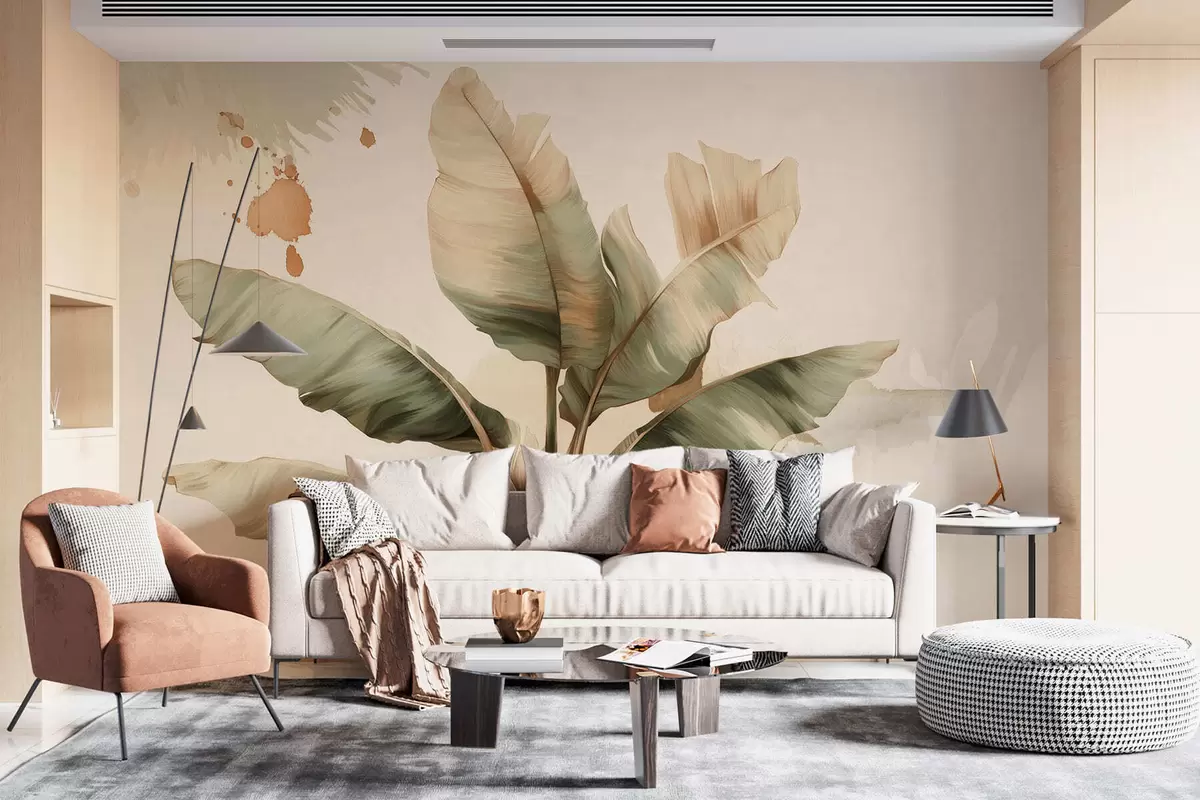 Фототапет голяма, живописна група бананови листа с петна в ретро стил Nr w05384