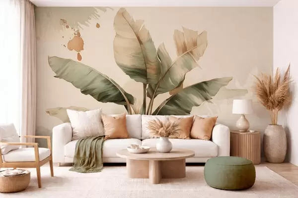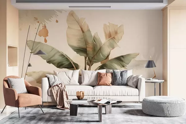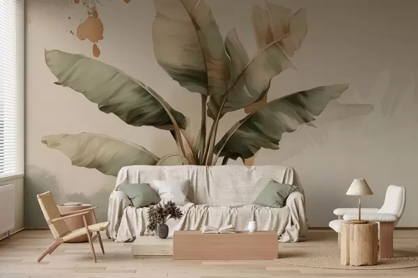 Фототапет голяма, живописна група бананови листа с петна в ретро стил Nr w05384