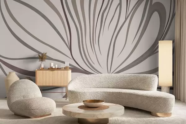 Фототапет Абстрактно цвете с линии в сиви и розови нюанси Nr w05392